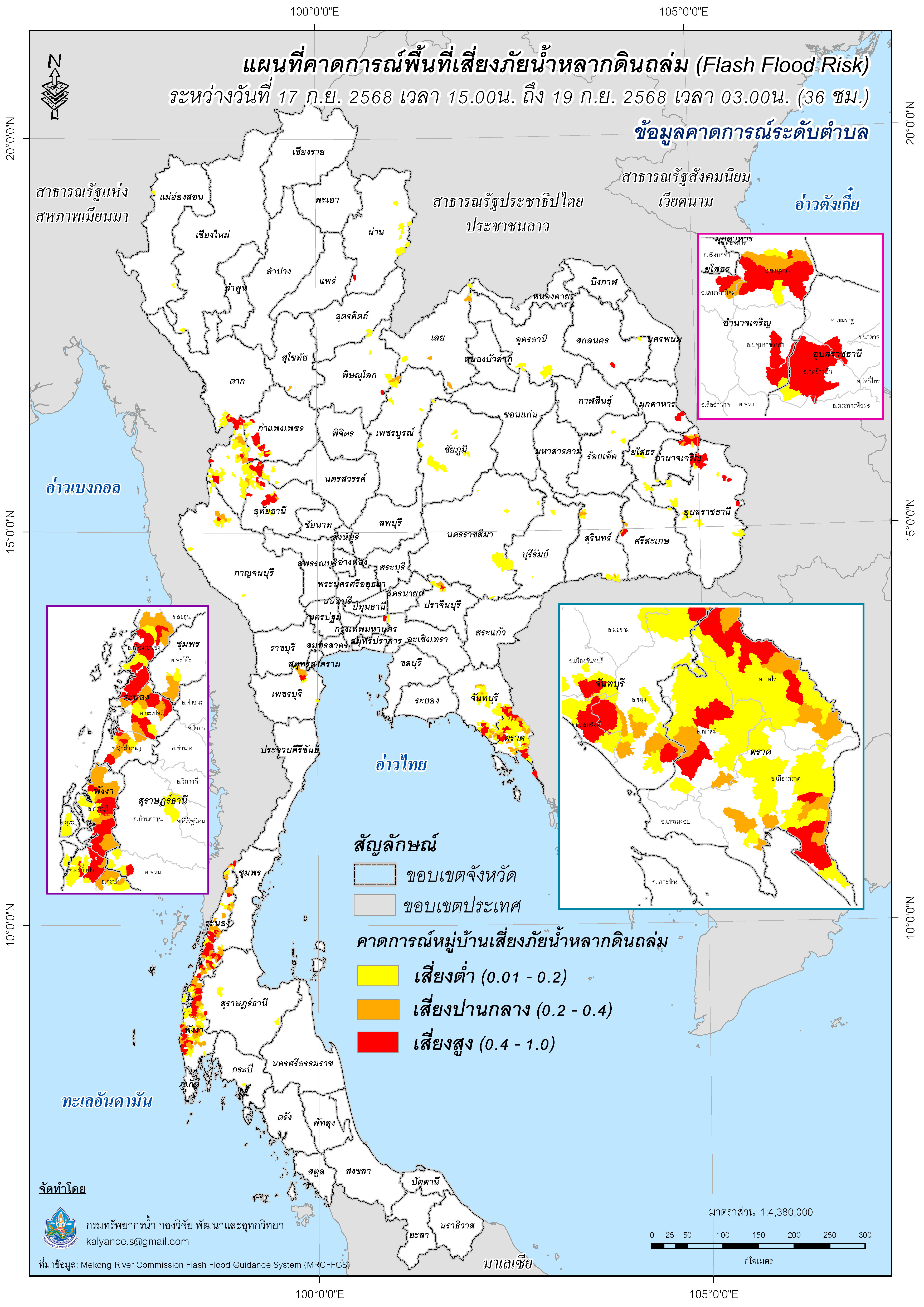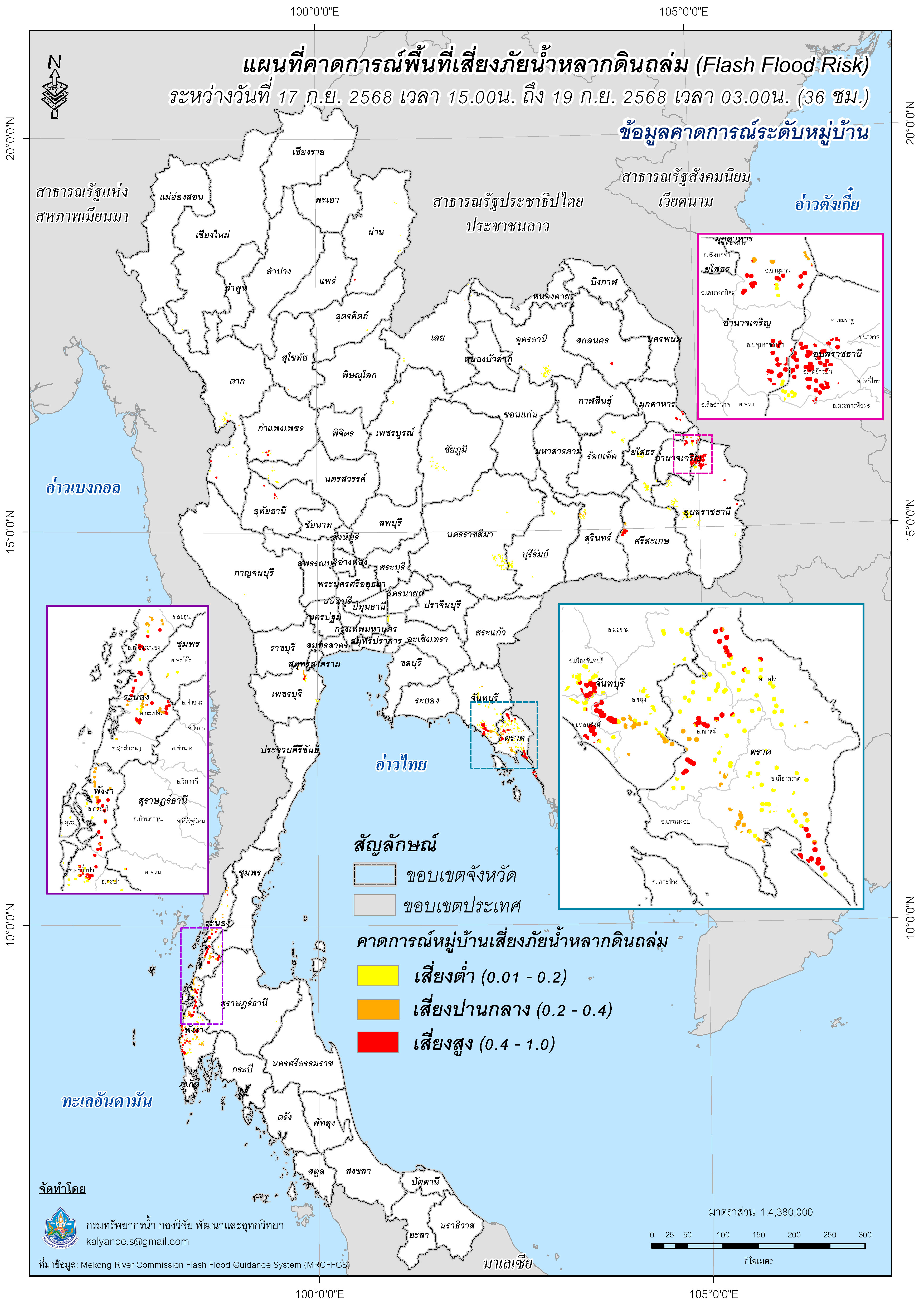 การคาดการณ์ตำบล/หมู่บ้านเสี่ยงภัยน้ำหลากดินถล่ม (Flash Flood Risk) 17 - 19 กันยายน 2568
