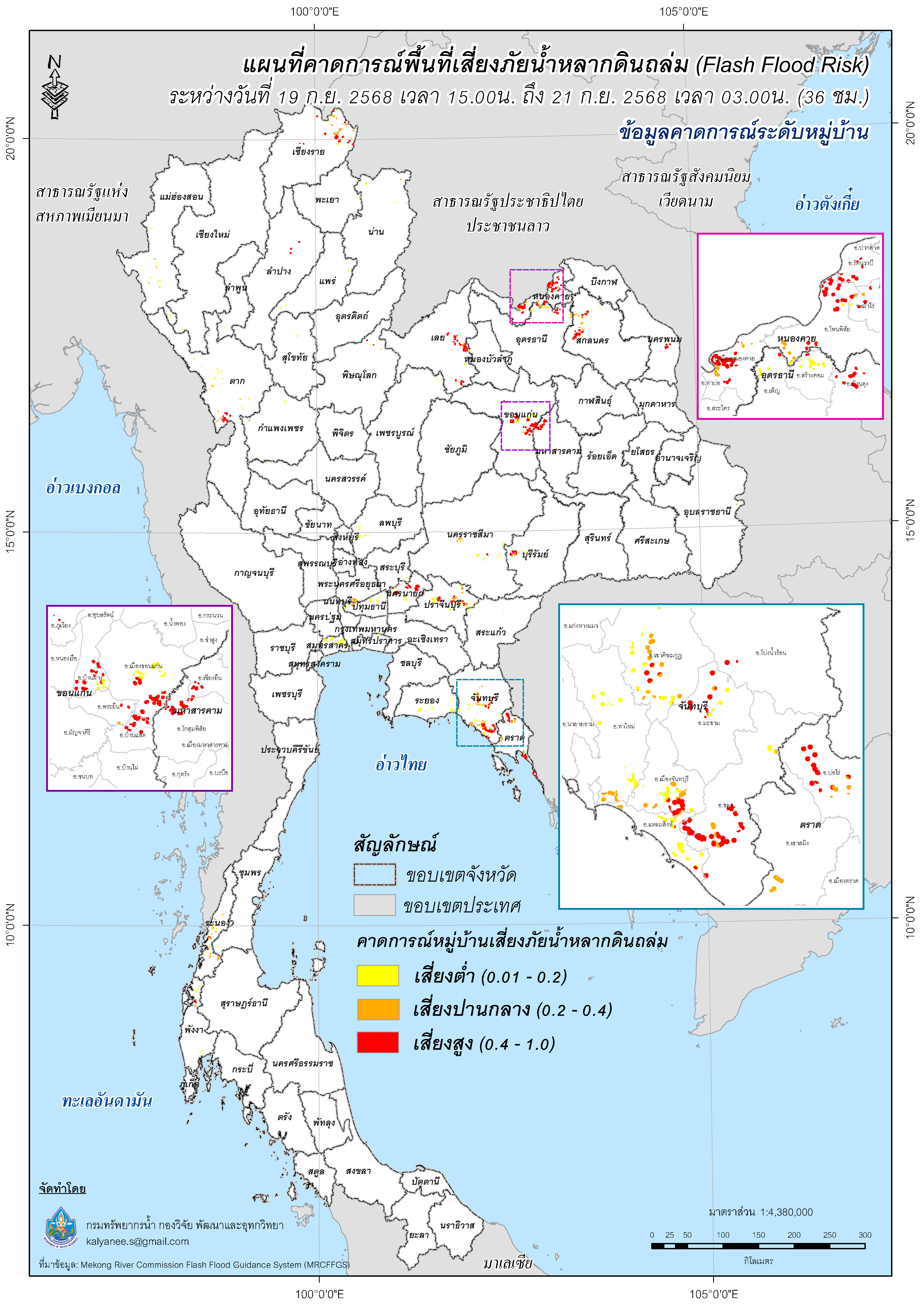 การคาดการณ์ตำบล/หมู่บ้านเสี่ยงภัยน้ำหลากดินถล่ม (Flash Flood Risk) 19 - 21 กันยายน 2568