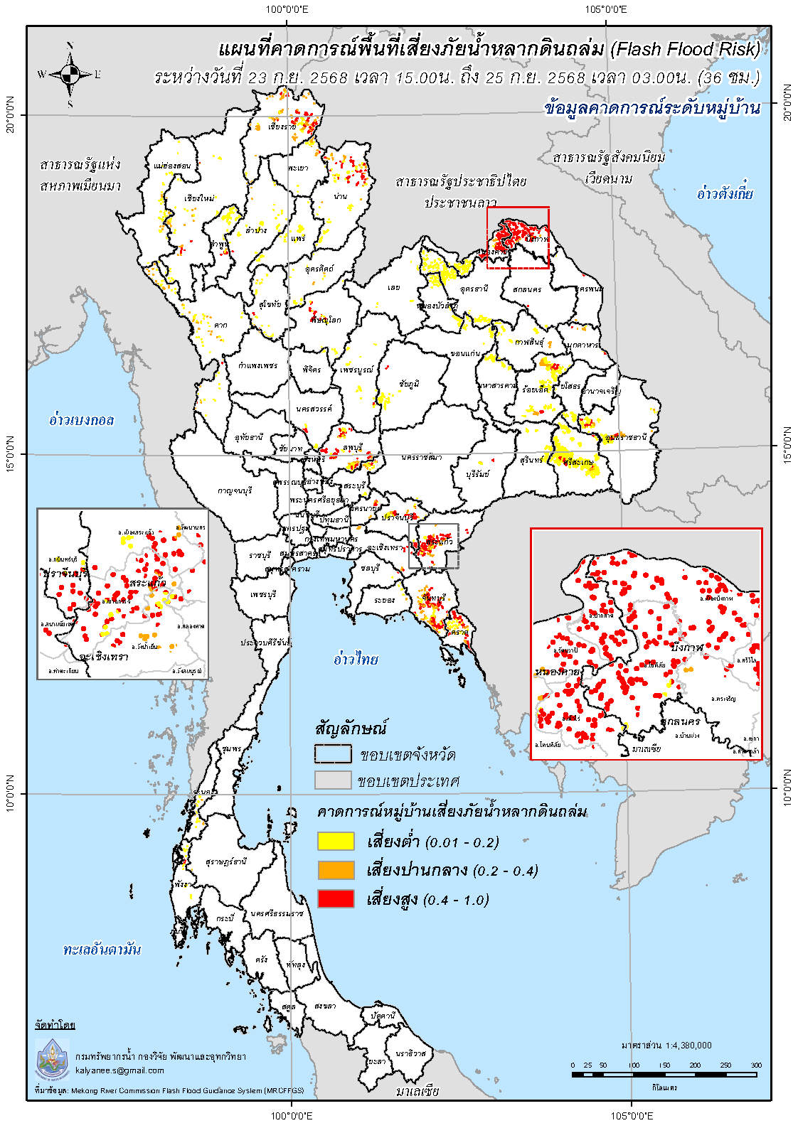 การคาดการณ์ตำบล/หมู่บ้านเสี่ยงภัยน้ำหลากดินถล่ม (Flash Flood Risk) 23 - 25 กันยายน 2568