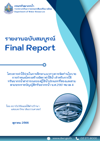 โครงการค่าใช้จ่ายในการศึกษาแนวทางการจัดทำนโยบายการกำหนดโครงสร้างอัตราค่าใช้น้ำสำหรับการใช้ทรัพยากรน้ำ สาธารณะของผู้ใช้น้ำประเภทที่สองและสามตาม พ.ร.บ.น้ำ พ.ศ.2561 หมวด 4 (รายงานฉบับสมบูรณ์)