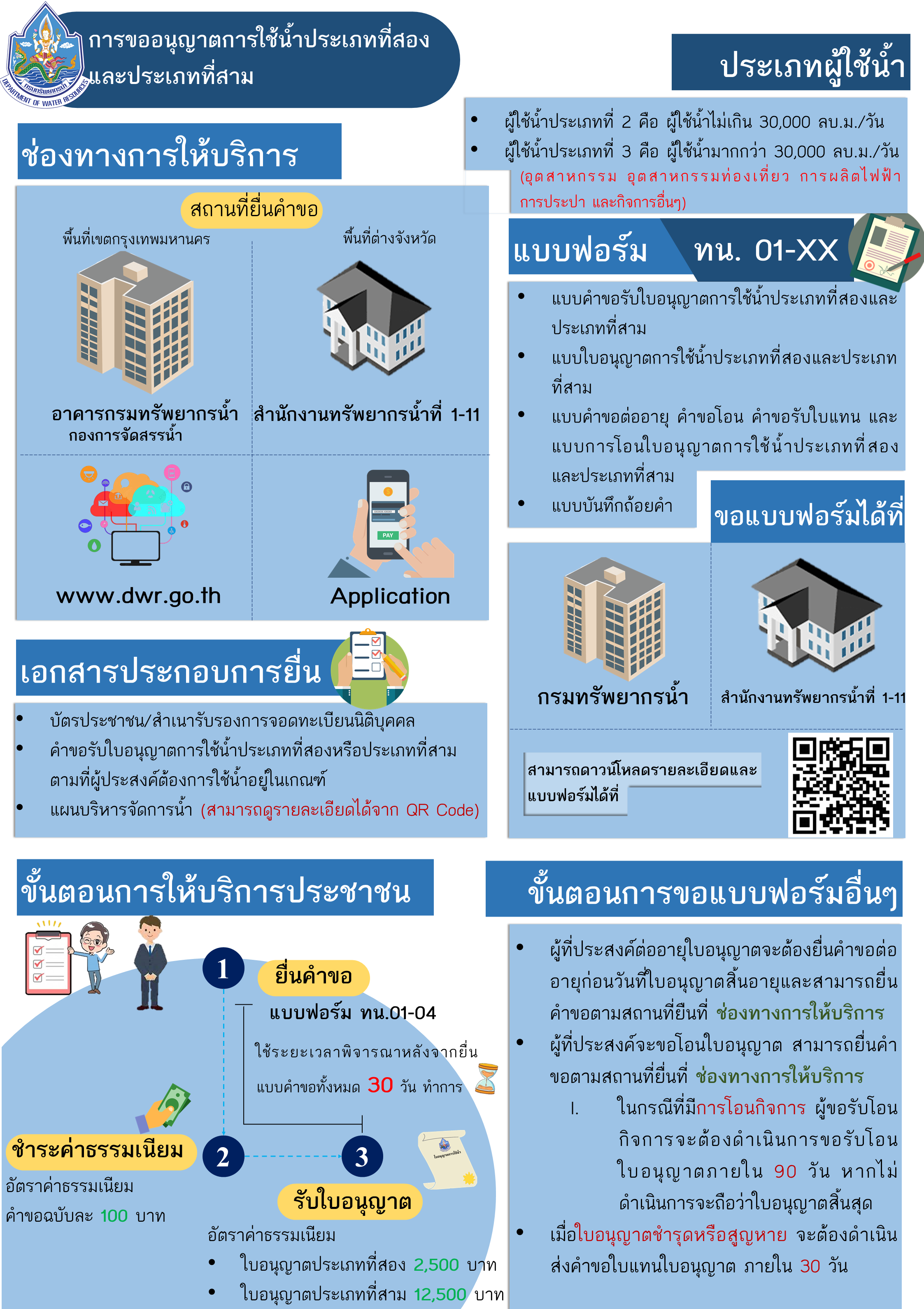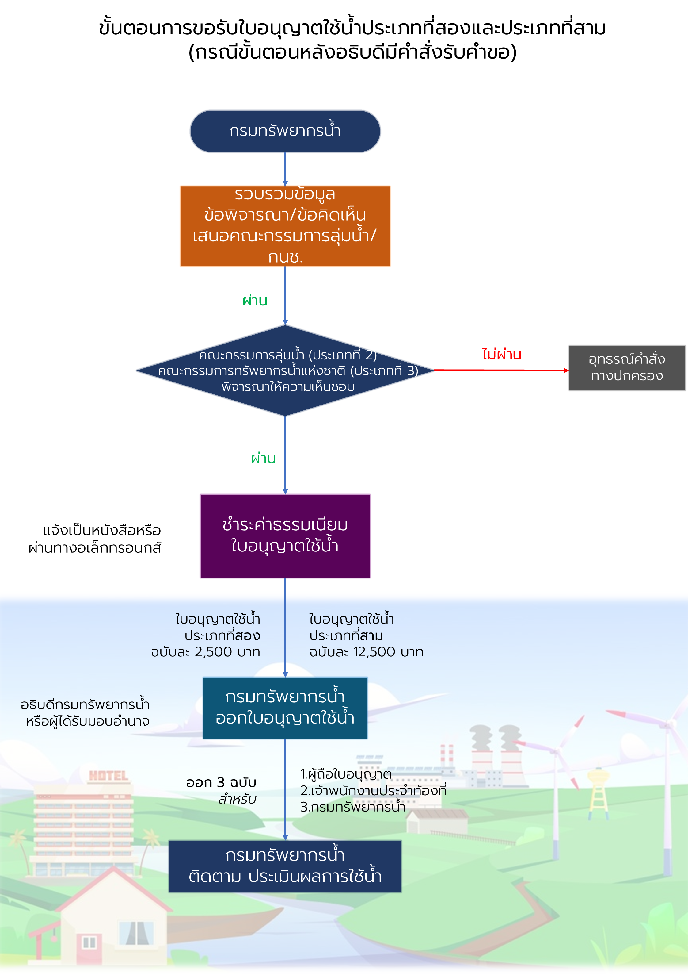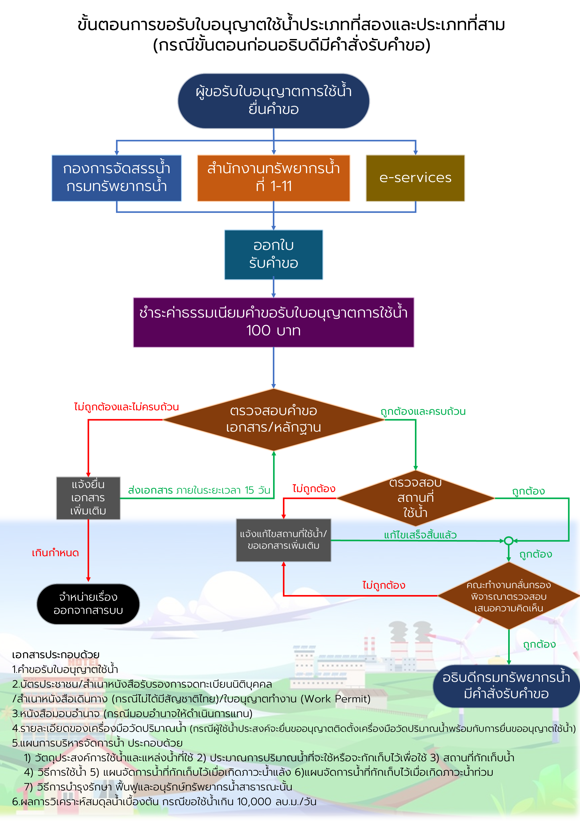 (ภาพรวม) การขออนุญาตการใช้น้ำประเภทที่สองและประเภทที่สาม