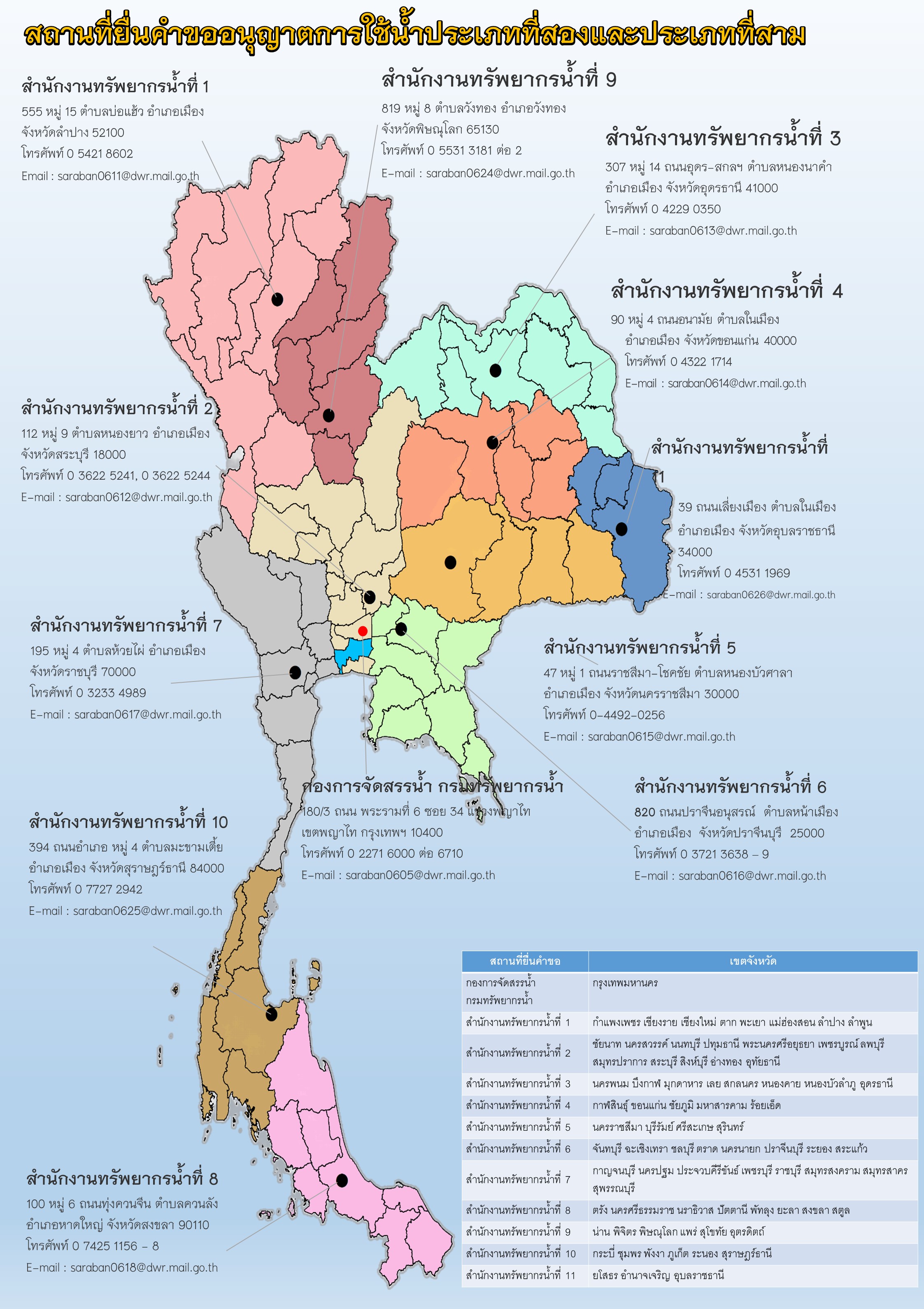 สถานที่ยื่นคำขออนุญาตการใช้น้ำประเภทที่สองและประเภทที่สาม