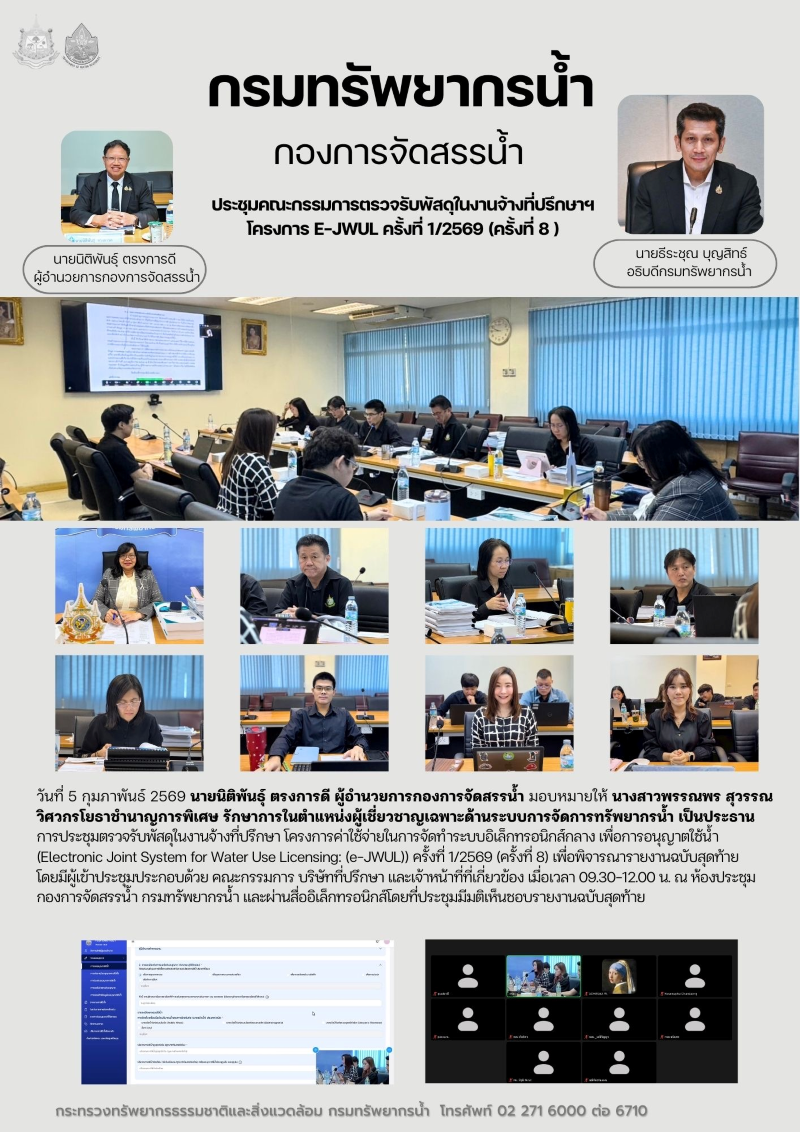 (Electronic Joint System for Water Use Licensing: (e-JWUL) ครั้งที่1/2569 (ครั้งที่ 8) เพื่อพิจารณารายงานฉบับสุดท้าย