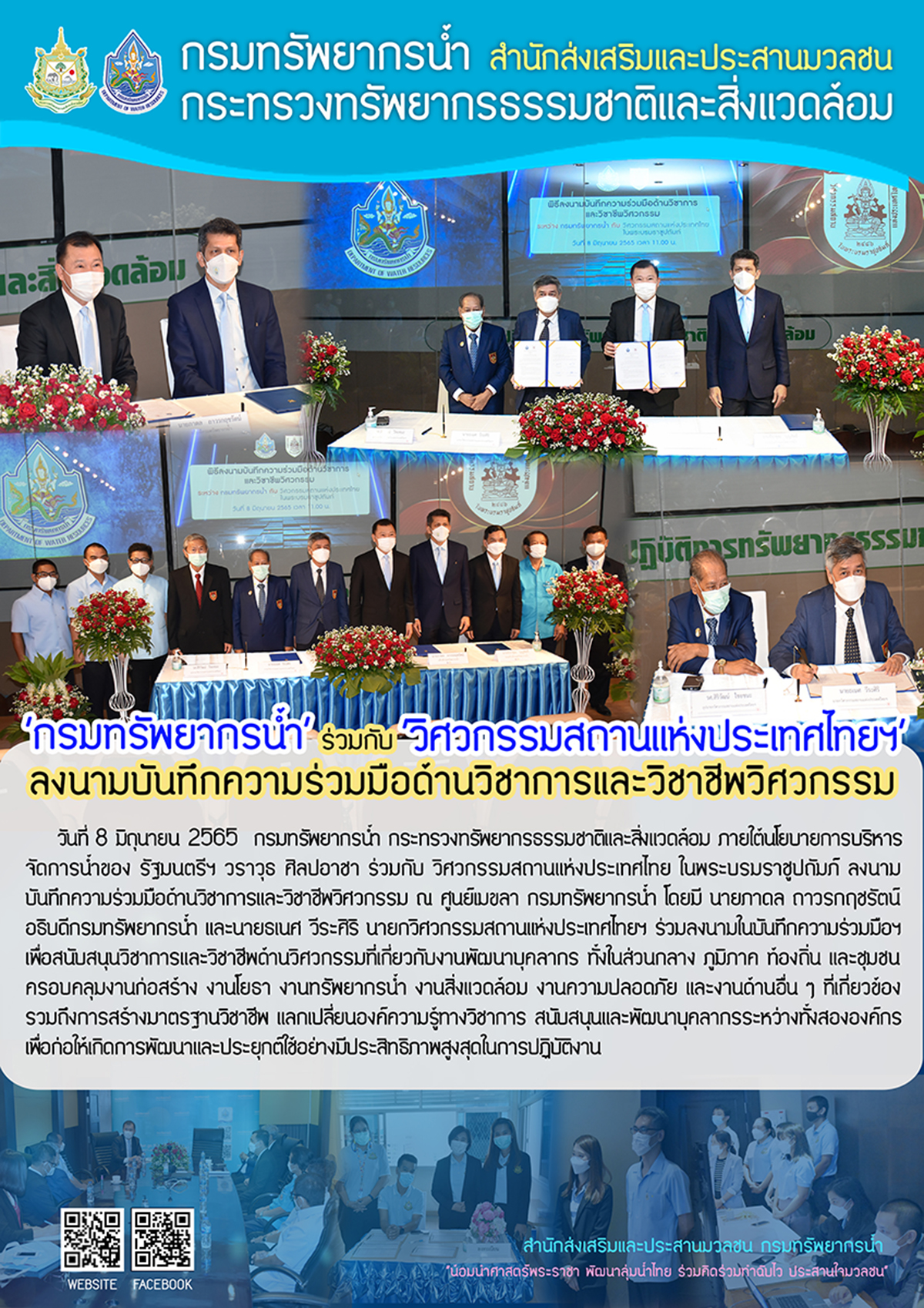 8 มิ.ย. 2565 ‘กรมทรัพยากรน้ำ’ ร่วมกับ ‘วิศวกรรมสถานแห่งประเทศไทยฯ’ ลงนามบันทึกความร่วมมือด้านวิชาการและวิชาชีพวิศวกรรม