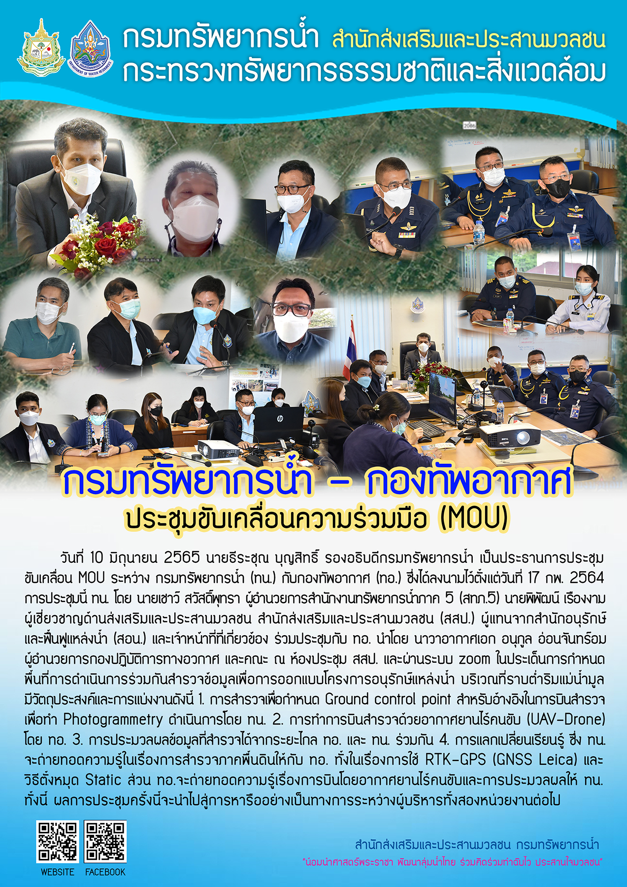 10 มิ.ย. 2565 การประชุมขับเคลื่อน MOU ระหว่าง กรมทรัพยากรน้ำ กับ กองทัพอากาศ