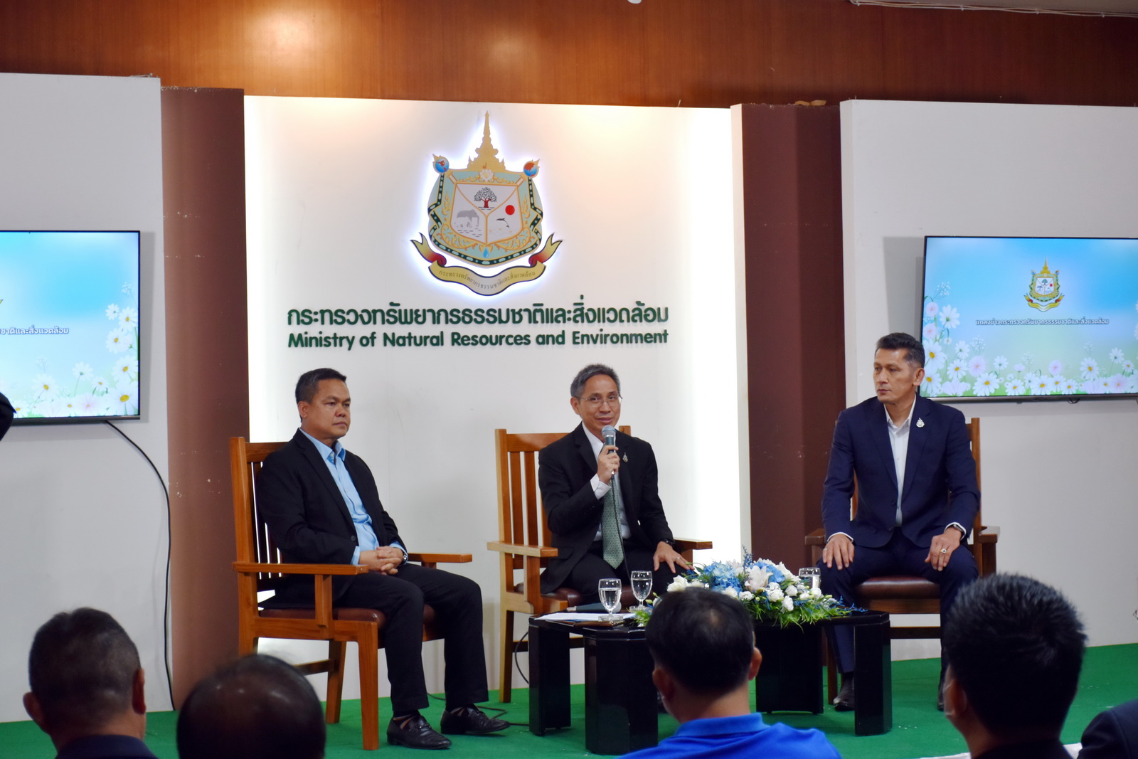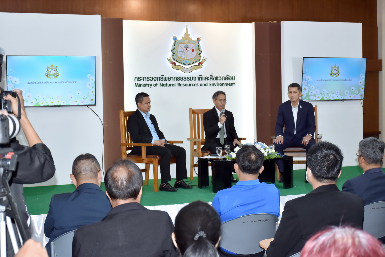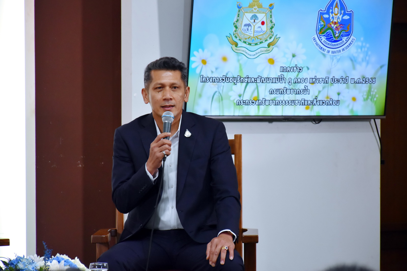 วันที่ 6 กันยายน 2566 เวลา 10.00 น. นายเถลิงศักดิ์ เพ็ชรสุวรรณ รองปลัดกระทรวงทรัพยากรธรรมชาติและสิ่งแวดล้อม ในฐานะประธานงานแถลงข่าวกระทรวงฯ ครั้งที่ 4 พร้อมด้วย นายธีระชุณ บุญสิทธิ์ รองอธิบดีกรมทรัพยากรน้ำ นายพิพัฒน์ เรืองงาม ผู้เชี่ยวชาญด้านส่งเสริมและประสานมวลชน รักษาราชการแทนผู้อำนวยการกองอนุรักษ์ทรัพยากรน้ำ คณะผู้บริหารและเจ้าหน้าที่กรมทรัพยากรน้ำ นายยงยุทธ นาควิโรจน์ รองอธิบดีกรมทรัพยากรน้ำบาดาลและคณะ ร่วมงานแถลงข่าววันอนุรักษ์และพัฒนาแม่น้ำ คู คลอง แห่งชาติ ประจำปี 2566 ณ ห้องแถลงข่าว ชั้น 1 กระทรวงทรัพยากรธรรมชาติและสิ่งแวดล้อม