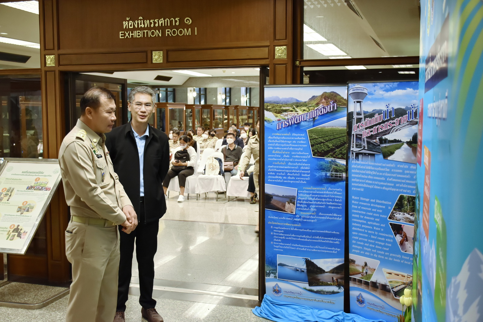 วันที่ 25 กันยายน 2566 นายภาดล ถาวรกฤชรัตน์ อธิบดีกรมทรัพยากรน้ำ พร้อมด้วยนายวีระ ขุนไชยรักษ์ รองอธิบดีฯ และเจ้าหน้าที่เข้าร่วมในพิธีลงนามบันทึกข้อตกลงความร่วมมือ (MOU) การบูรณาการขับเคลื่อนการพัฒนาโครงสร้างพื้นฐานในพื้นที่เขตปฏิรูปที่ดิน ตามบันทึกข้อตกลงความร่วมมือ 16 หน่วยงาน โดยมี ร้อยเอก ธรรมนัส พรหมเผ่า รัฐมนตรีว่าการกระทรวงเกษตรและสหกรณ์ เป็นประธานเปิดพร้อมเยี่ยมชมนิทรรศการ โดย กองอนุรักษ์ทรัพยากรน้ำ ได้ร่วมจัดนิทรรศการ ณ อาคารศาลาพระมิ่งขวัญ ศูนย์ส่งเสริมและพัฒนาอาชีพเสริมนอกภาคการเกษตร (ศูนย์ศิลปาชีพบางไทรเดิม) จ.พระนครศรีอยุธยา