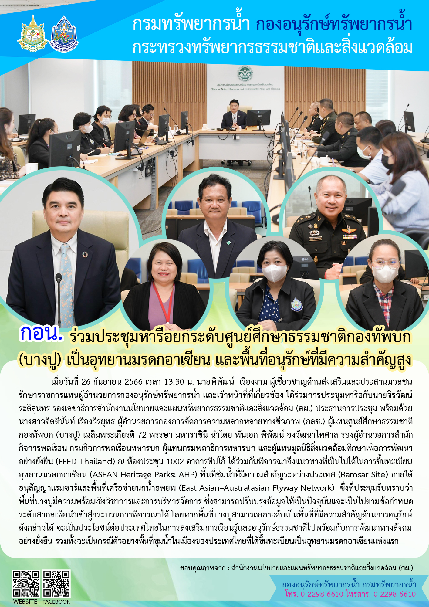 กรมทรัพยากรน้ำ ร่วมประชุมหารือยกระดับศูนย์ศึกษาธรรมชาติกองทัพบก (บางปู) เป็นอุทยานมรดกอาเซียน (ASEAN Heritage Parks) และพื้นที่อนุรักษ์ที่มีความสำคัญสูง