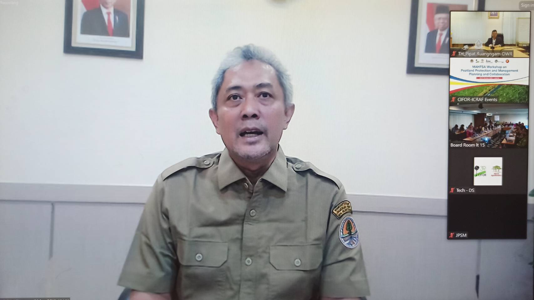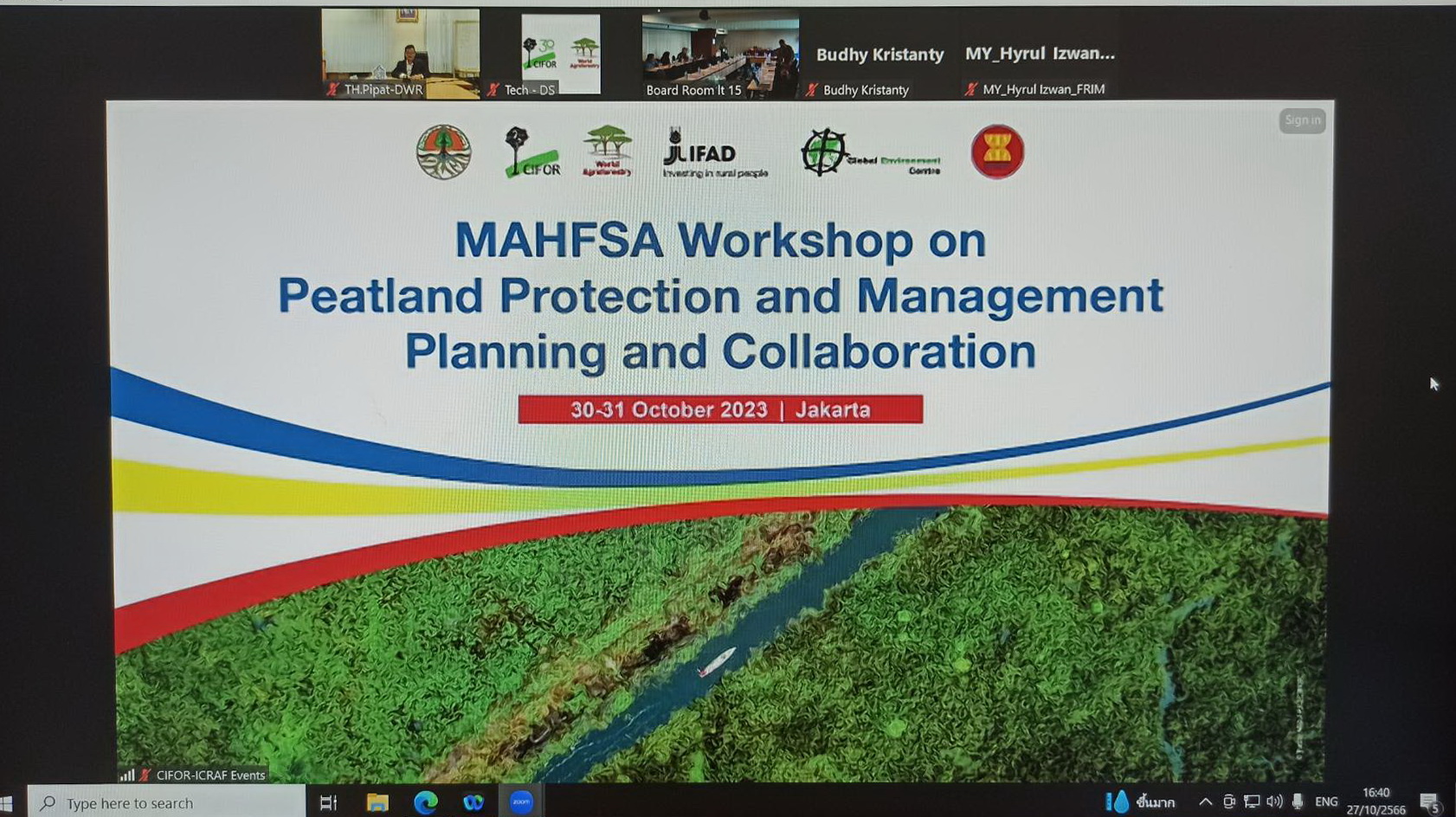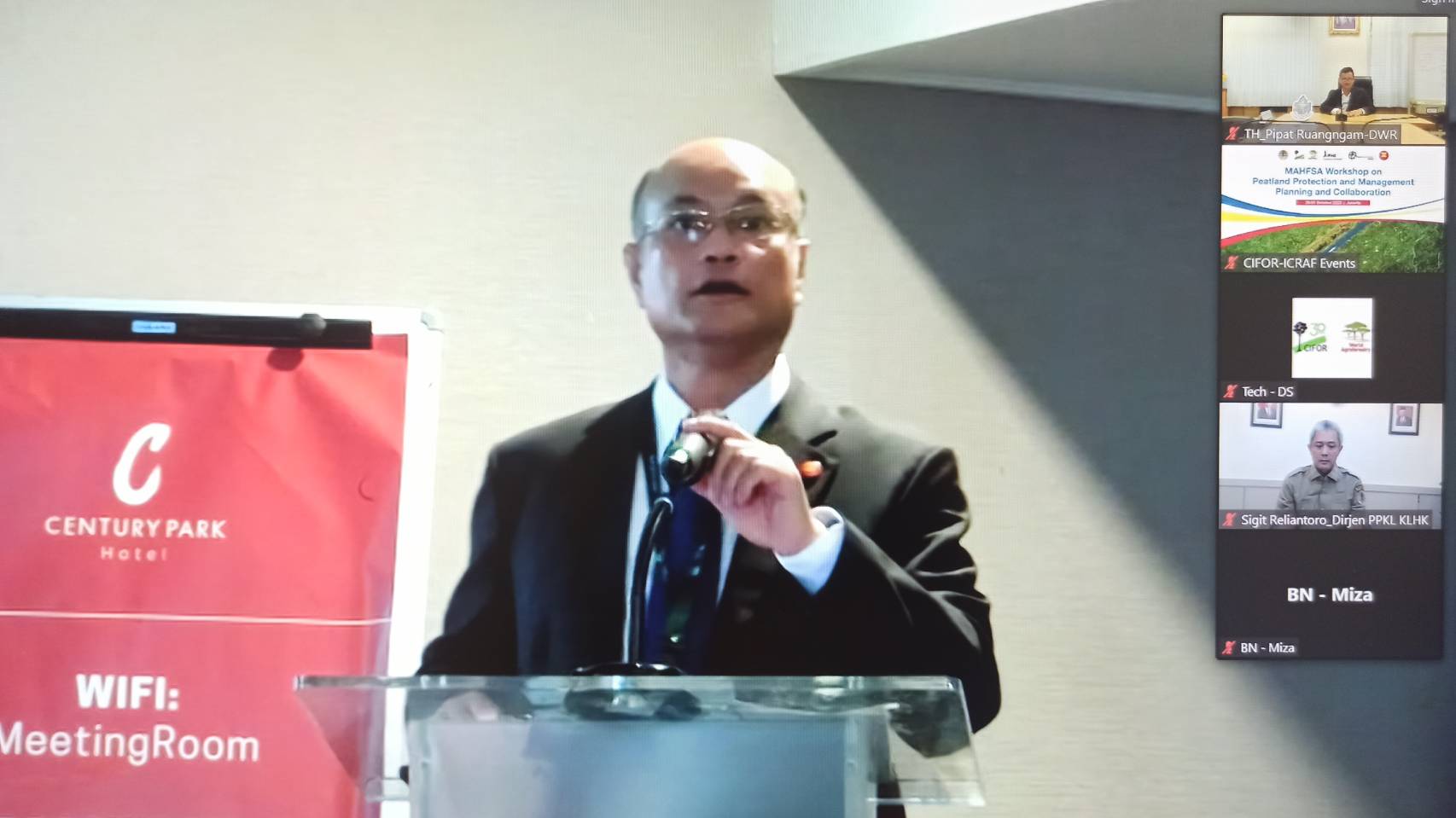 วันที่ 30 ตุลาคม 2566 นายพิพัฒน์ เรืองงาม ผู้เชี่ยวชาญด้านส่งเสริมและประสานมวลชน รักษาราชการแทนผู้อำนวยการกองอนุรักษ์ทรัพยากรน้ำ กรมทรัพยากรน้ำ ร่วมประชุมความร่วมมือและแผนการป้องกันและการจัดการป่าพรุ ณ โรงแรมเซ็นจูรีพาร์ค กรุงจาการ์ตา สาธารณรัฐอินโดนีเซีย ผ่านระบบประชุมทางไกล