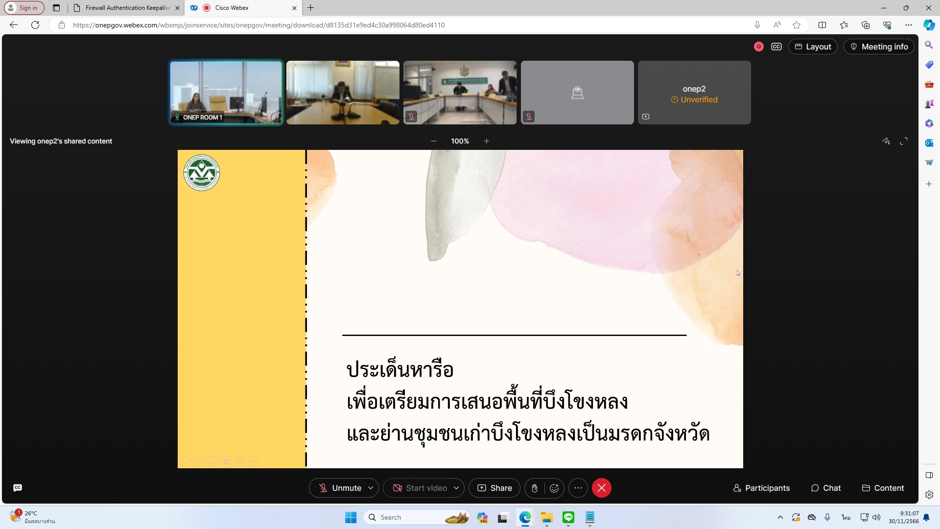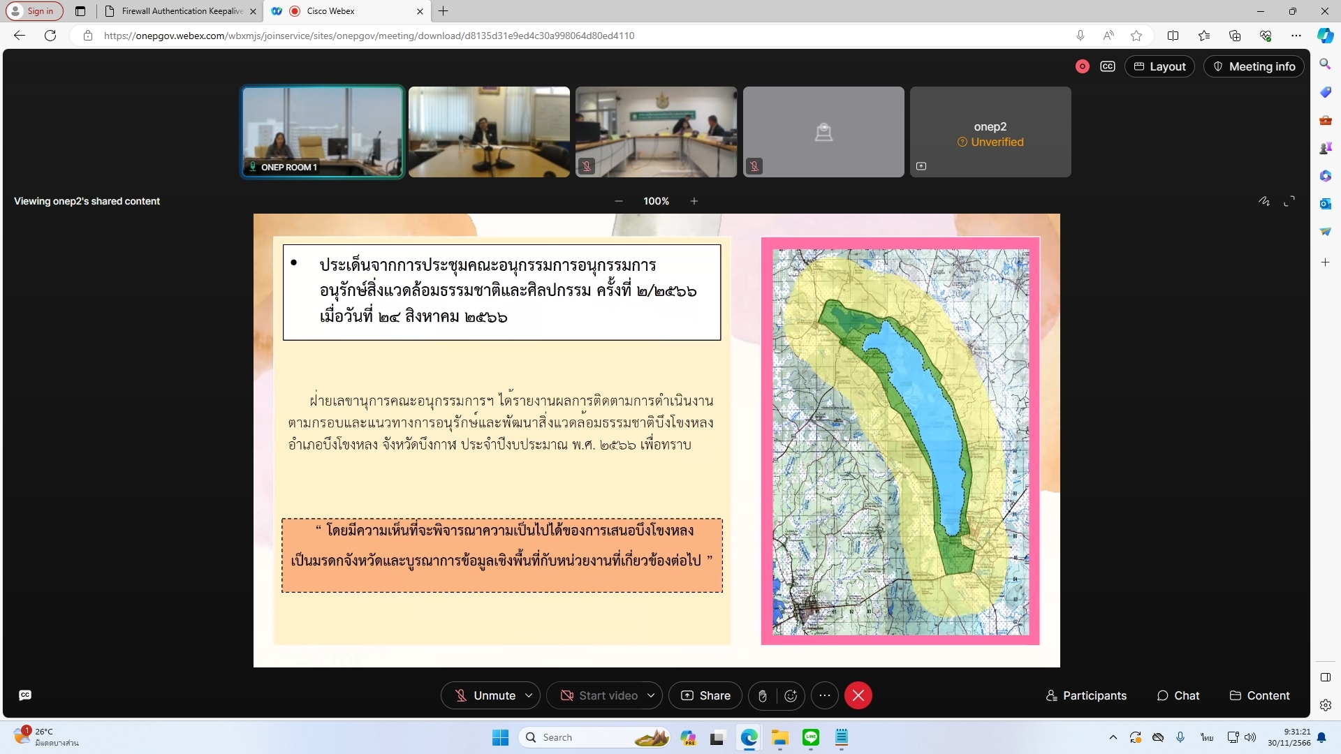 วันที่ 30 พฤศจิกายน 2566 นายพิพัฒน์ เรืองงาม ผู้เชี่ยวชาญด้านส่งเสริมและประสานมวลชน รักษาราชการแทนผู้อำนวยการกองอนุรักษ์ทรัพยากรน้ำ (กอน.) และเจ้าหน้าที่ที่เกี่ยวข้อง ร่วมกับสำนักงานทรัพยากรน้ำที่ 3 เข้าร่วมประชุมหารือเพื่อเตรียมการเสนอพื้นที่ชุ่มน้ำบึงโขงหลงและย่านชุมชนเก่าบึงโขงหลงเป็นมรดกจังหวัด ผ่านสื่ออิเล็กทรอนิกส์