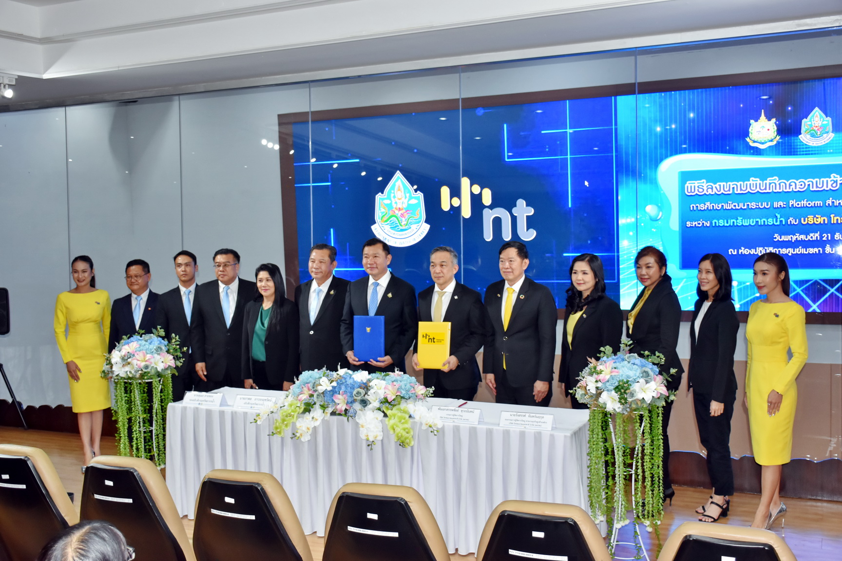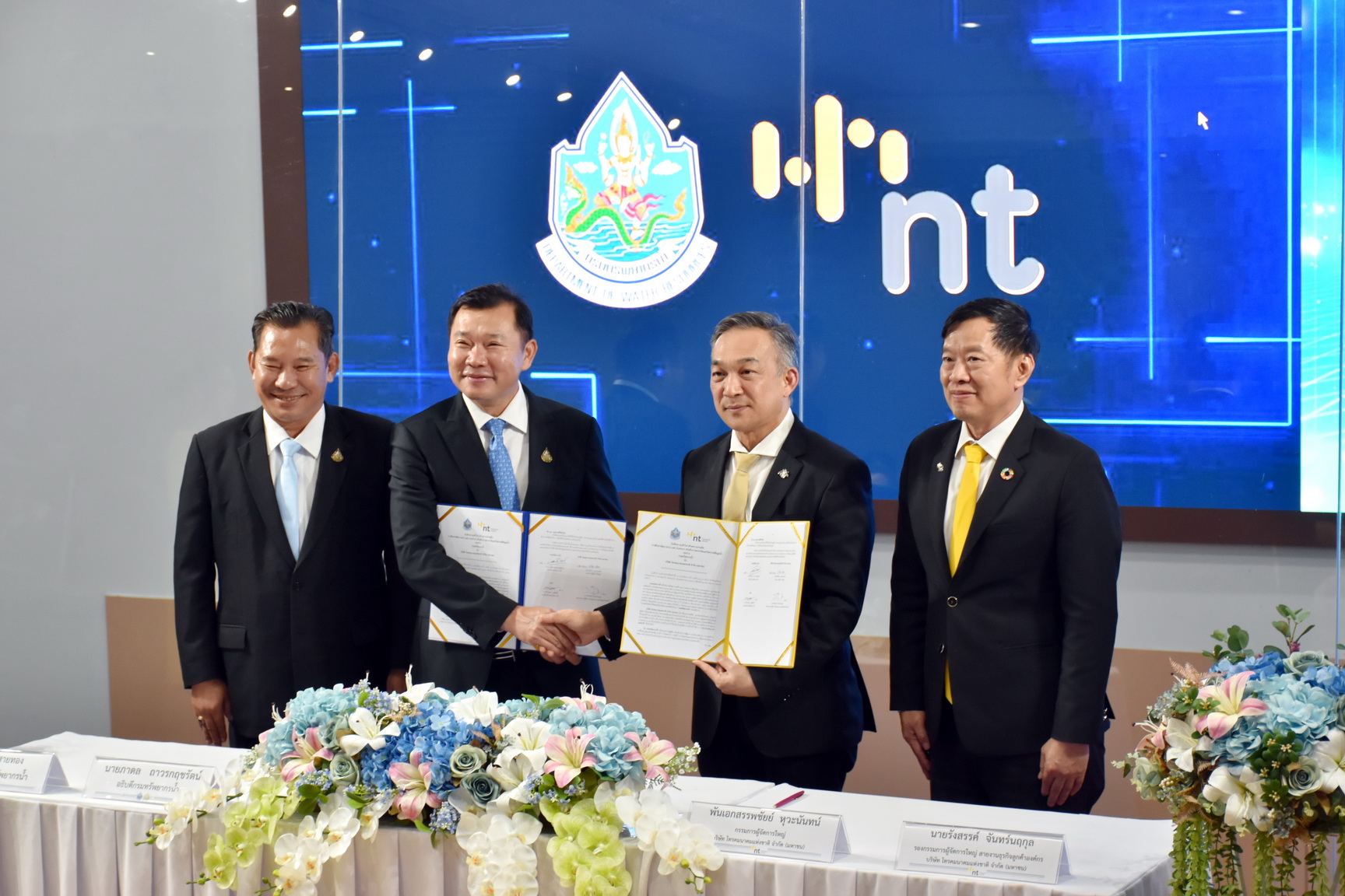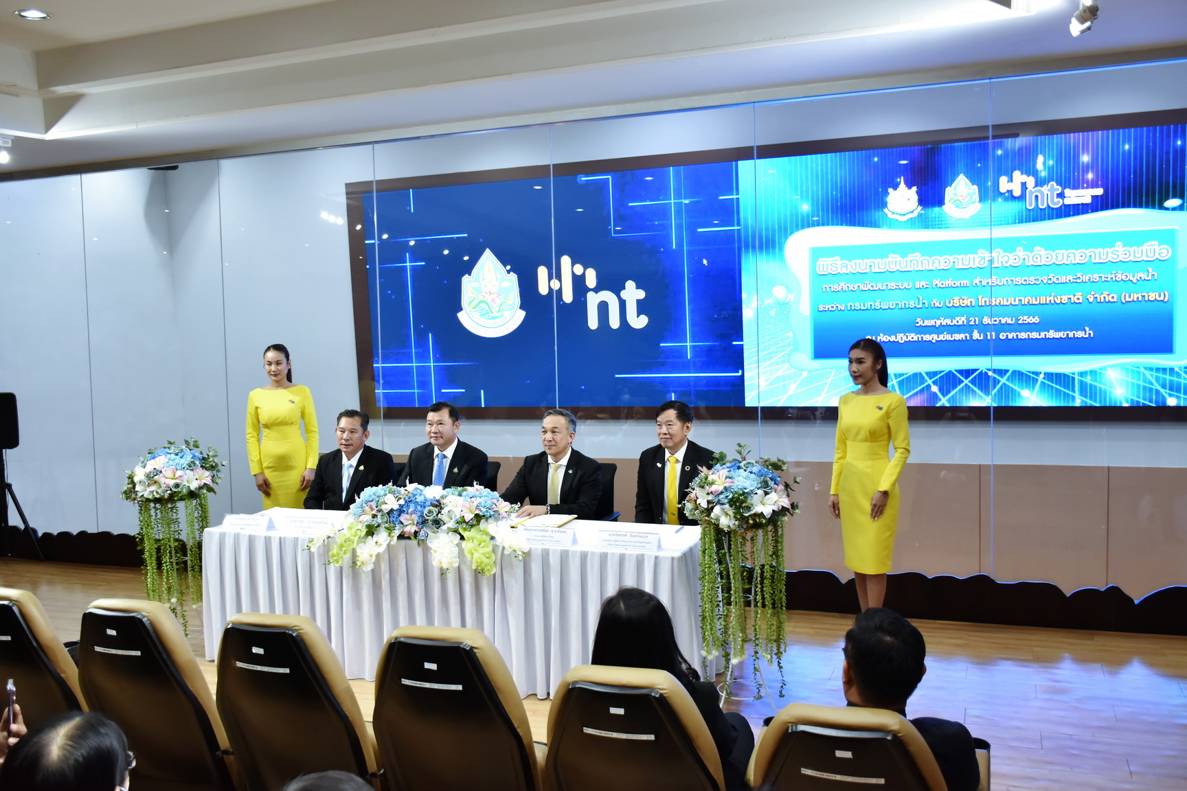 วันที่ 21 ธันวาคม พ.ศ. 2566 นายภาดล ถาวรกฤชรัตน์ อธิบดีกรมทรัพยากรน้ำ และ พันเอกสรรพชัยย์ หุวะนันทน์ กรรมการผู้จัดการใหญ่ บมจ. โทรคมนาคมแห่งชาติ ลงนามบันทึกความเข้าใจว่าด้วยความร่วมมือการศึกษาพัฒนาระบบ และ Platform สำหรับการตรวจวัดและวิเคราะห์ข้อมูลน้ำ ณ ห้องศูนย์เมขลา ชั้น 11 กรมทรัพยากรน้ำ