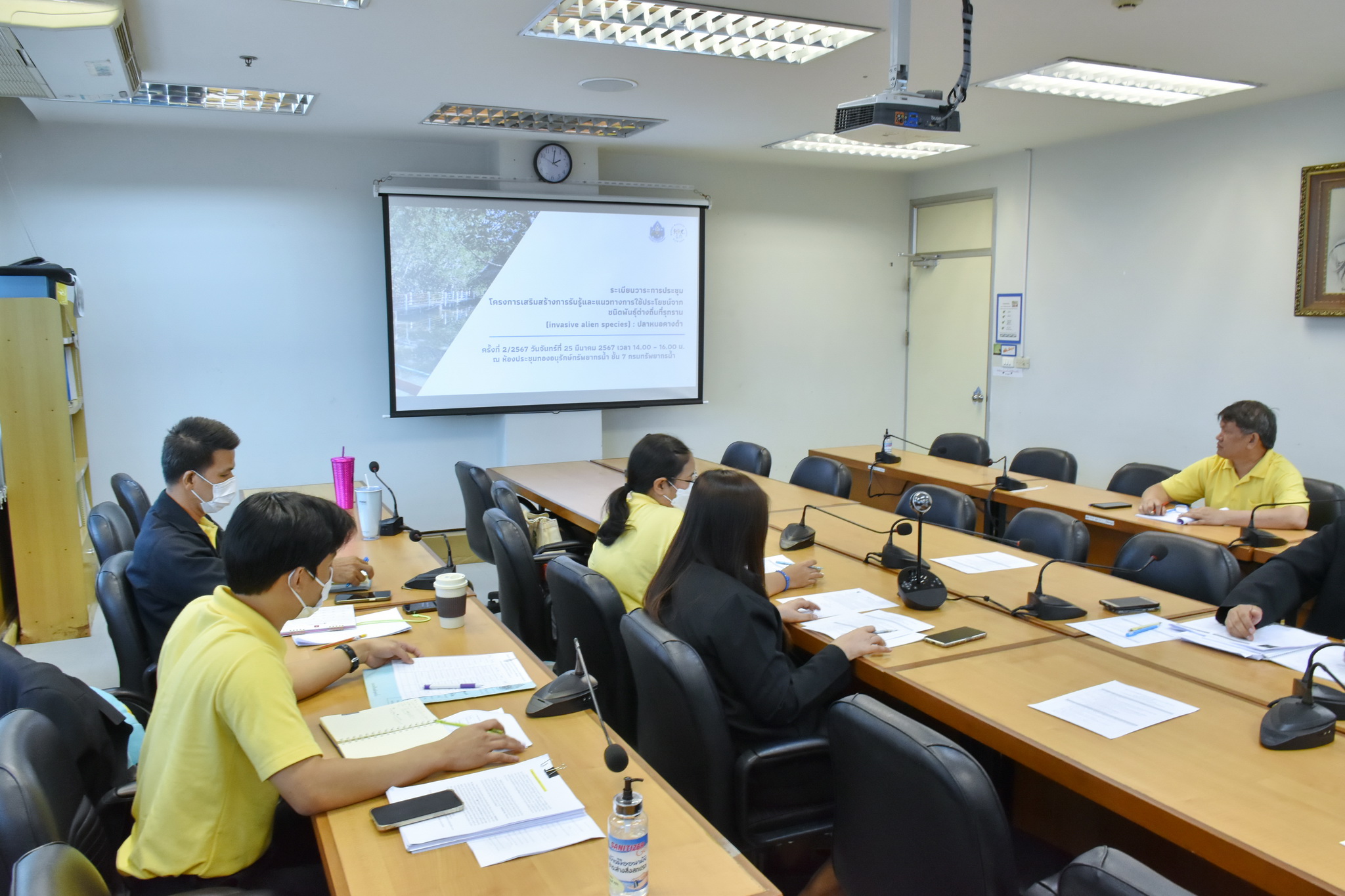 วันที่ 25 มีนาคม 2567 นายพิพัฒน์ เรืองงาม ผู้เชี่ยวชาญด้านส่งเสริมและประสานมวลชน รักษาราชการแทนผู้อำนวยการกองอนุรักษ์ทรัพยากรน้ำ (กอน.) กรมทรัพยากรน้ำ นายนิรุติ คูณผล ผู้เชี่ยวชาญด้านความร่วมมือระหว่างประเทศเกี่ยวกับทรัพยากรน้ำ และเจ้าหน้าที่คณะทำงานโครงการฯ ประชุมหารือการดำเนินงานโครงการเสริมสร้างการรับรู้และแนวทางการใช้ประโยชน์จากชนิดพันธุ์ต่างถิ่นที่รุกราน (Invasive alien species) : ปลาหมอคางดำ ครั้งที่ 2/2567 ณ ห้องประชุม กอน. ชั้น 7 อาคารกรมทรัพยากรน้ำ