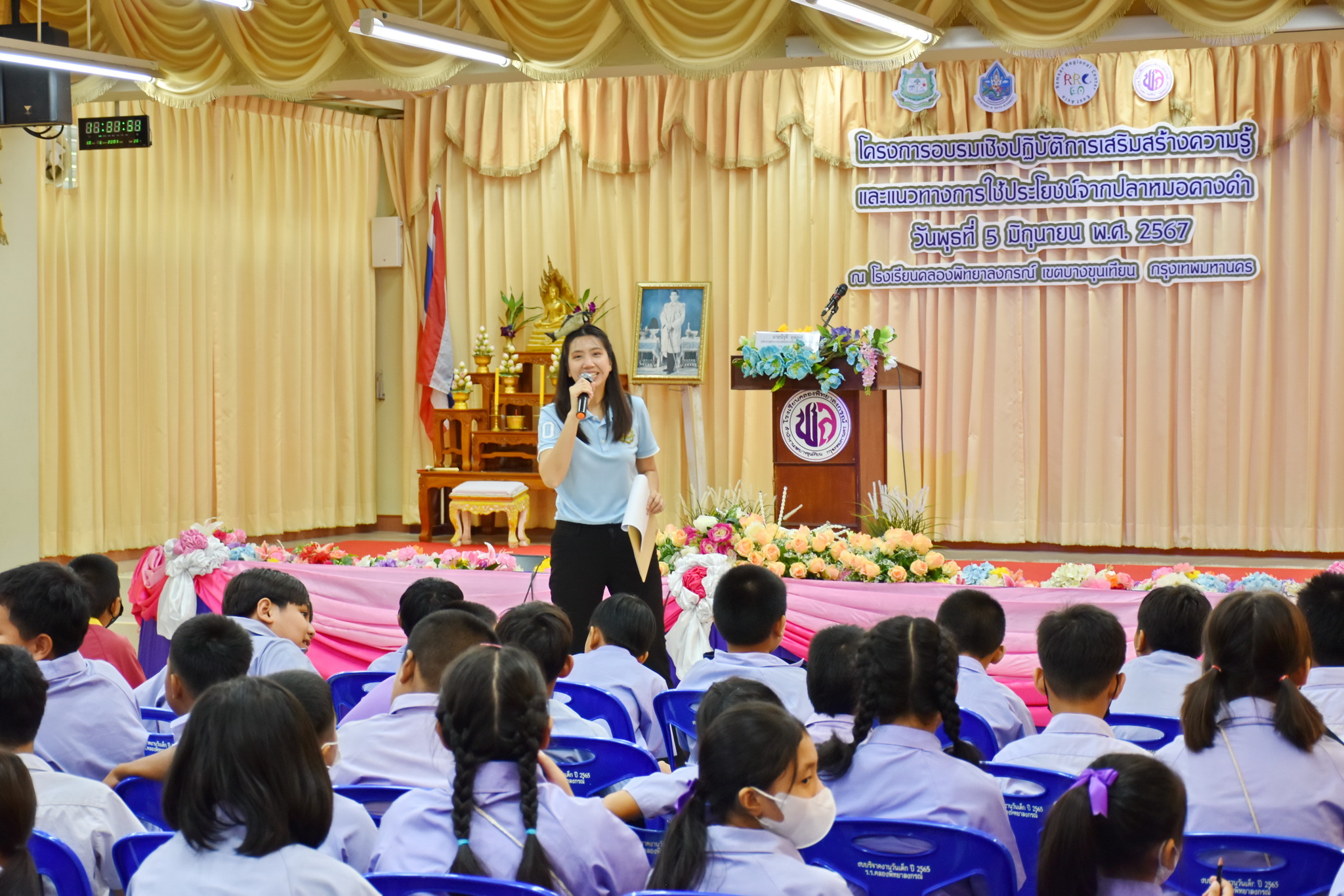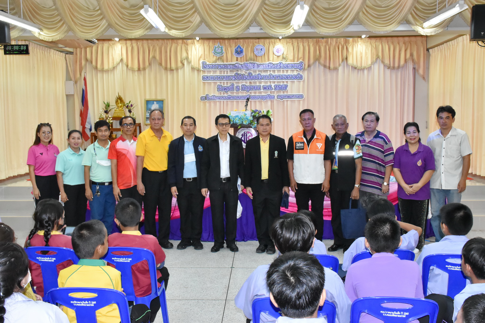 วันที่ 5 มิถุนายน 2567 นายนิรุติ คูณผล ผู้เชี่ยวชาญด้านความร่วมมือระหว่างประเทศเกี่ยวกับทรัพยากรน้ำ และคณะทำงานโครงการเสริมสร้างการรับรู้และแนวทางการใช้ประโยชน์จากชนิดพันธุ์ต่างถิ่นที่รุกราน (Invasive alien species) : ปลาหมอคางดำ จัดอบรมเชิงปฏิบัติการเสริมสร้างความรู้และแนวทางการใช้ประโยชน์จากปลาหมอคางดำ ณ โรงเรียนคลองพิทยาลงกรณ์ เขตบางขุนเทียน กรุงเทพมหานคร