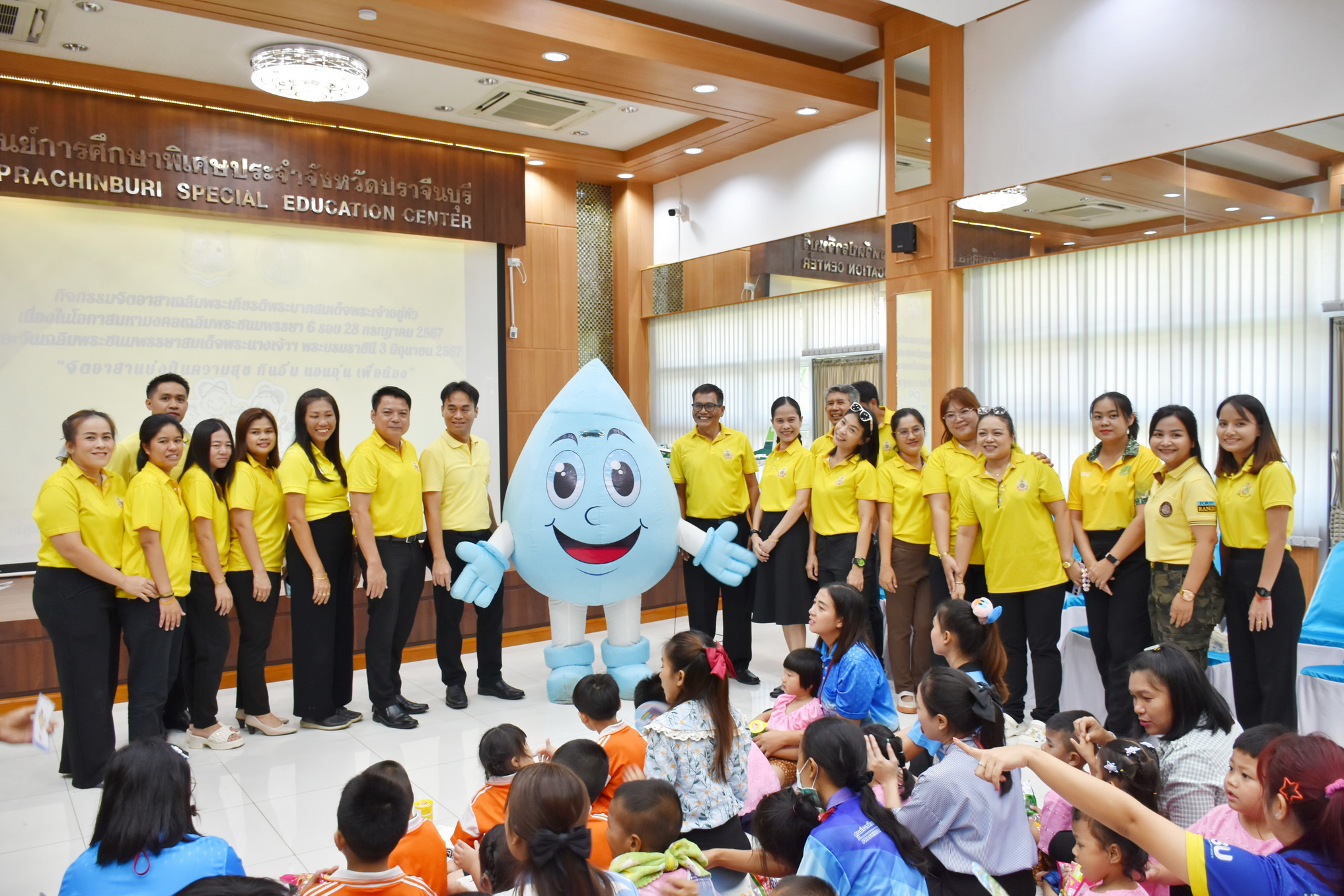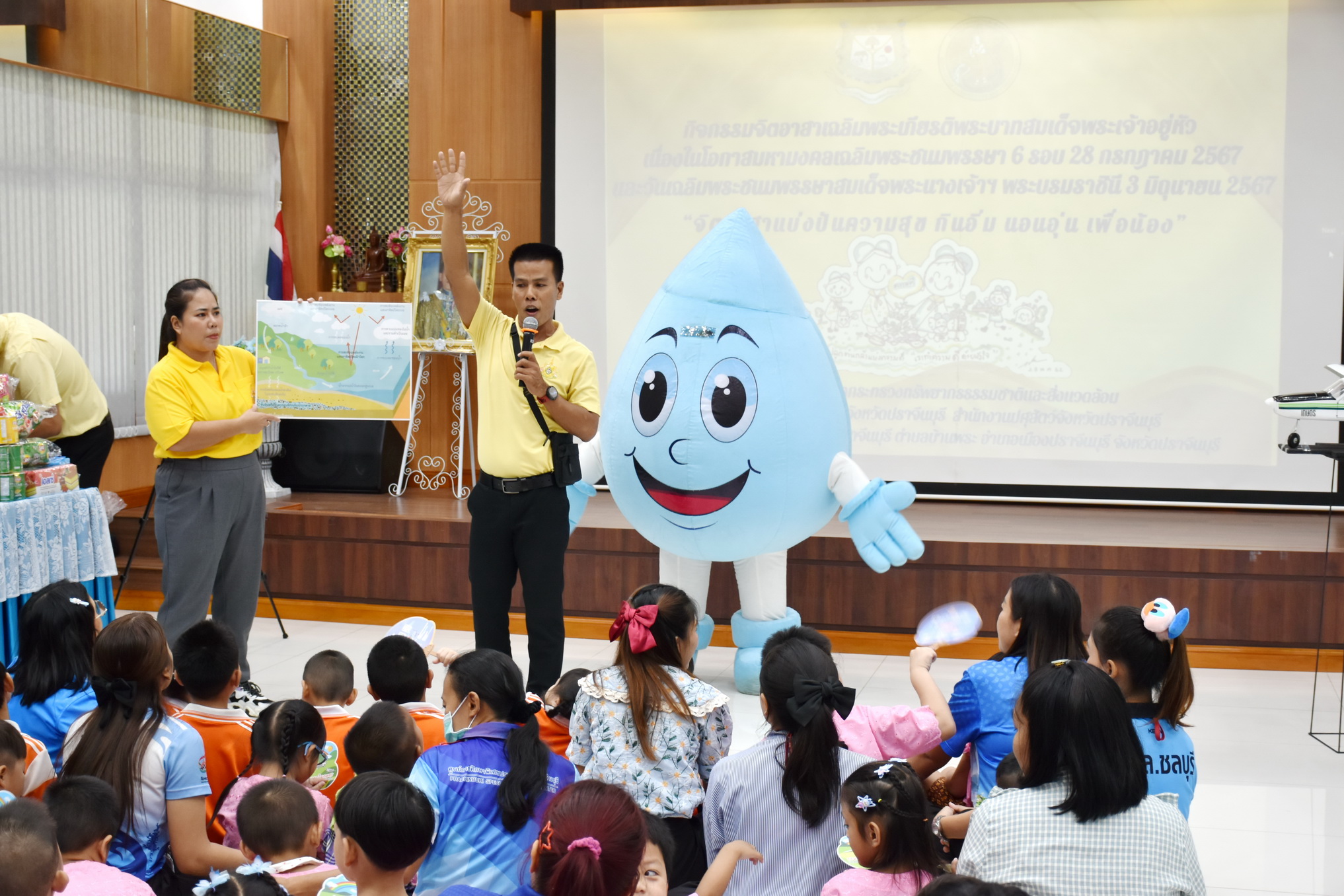 วันที่ 5 กรกฎาคม 2567 กองอนุรักษ์ทรัพยากรน้ำ (กอน.) ร่วมจัดกิจกรรม แบ่งปันความสุข กินอิ่ม นอนอุ่น เพื่อน้อง” โดยมีนายวรวิทย์ ชัยวิมลกุล ผู้อำนวยการสำนักงานทรัพยากรน้ำที่ 6 (สทน. 6) นำทีมผู้บริหารและเจ้าหน้าที่กรมทรัพยากรน้ำ กระทรวงทรัพยากรธรรมชาติและสิ่งแวดล้อม (ทส.) จัดกิจกรรมจิตอาสาเพื่อเฉลิมพระเกียรติพระบาทสมเด็จพระเจ้าอยู่หัวเนื่องในโอกาสพระราชพิธีมหามงคลเฉลิมพระชนมพรรษา 6 รอบ 28 กรกฎาคม 2567 โดยมีหน่วยงานในสังกัด ทส. จังหวัดปราจีนบุรี และสำนักงานเกษตรและสหกรณ์จังหวัดปราจีนบุรี เข้าร่วมกิจกรรมมอบทุนการศึกษา อุปกรณ์การเรียนของใช้ในชีวิตประจำวัน และเลี้ยงอาหารกลางวัน นอกจากนี้ยังมีกิจกรรม ปลูกต้นปีบ ซึ่งเป็นดอกไม้ประจำจังหวัด และกิจกรรมให้ความรู้เรื่อง “วัฏจักรของน้ำ” โดย ทีมวิทยากรจากกองอนุรักษ์ทรัพยากรน้ำ ณ ศูนย์การศึกษาพิเศษตำบลบ้านพระ อำเภอมืองปราจีนบุรี จังหวัดปราจีนบุรี