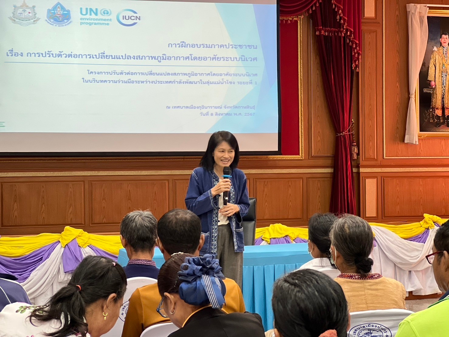 วันที่ 8 กรกฎาคม 2567 เวลา 09.00 น. นายนิทัศน์ พรมพันธุ์ ผู้อำนวยการกองอนุรักษ์ทรัพยากรน้ำ ได้มอบหมายให้ นายชนาวัชร อรุณรัตน์ ผู้อำนวยการส่วนบริหารจัดการทรัพยากรน้ำสาธารณะ จัดการฝึกอบรมภาคประชาชนโครงการปรับตัวต่อการเปลี่ยนแปลงสภาพภูมิอากาศโดยอาศัยระบบนิเวศ ในบริบทความร่วมมือระหว่างประเทศกำลังพัฒนาในลุ่มน้ำโขง โดยนายชนาวัขร อรุณรัตน์ ได้กล่าวเปิดการฝึกอบรม และนางสาววารุณี รักษาผล ผู้อำนวยการส่วนอนุรักษ์ทรัพยากรน้ำที่ 2 ร้อยเอ็ด กล่าวต้อนรับผู้เข้าร่วมอบรม การอบรมครั้งนี้ มี ดร. พรวิภา คลังสิน ผู้จัดการโครงการฯ นายภัคเกษม ธงชัย ผู้แทนจาก IUCN รศ.ดร. สุชาดา ทวีสิทธิ์ ผู้เชี่ยวชาญด้านความเท่าเทียม เจ้าหน้าที่ส่วนอนุรักษ์ทรัพยากรน้ำ ที่ 2 ร้อยเอ็ด ตัวแทนภาคประชาชนในพื้นที่ลุ่มน้ำยังตอนกลาง และเจ้าหน้าที่ที่เกี่ยวข้อง เข้าร่วมการฝึกอบรมฯ ณ ห้องประชุมเทศบาลเมืองกุฉินารายณ์ อำเภอกุฉินารายณ์ จังหวัดกาฬสินธุ์ เพื่อเสริมสร้างความรู้ความเข้าใจและขีดความสามารถในการปรับตัวต่อการเปลี่ยนแปลงสภาพภูมิอากาศ โดยอาศัยระบบนิเวศ ในพื้นที่ลุ่มน้ำยังต่อไป
