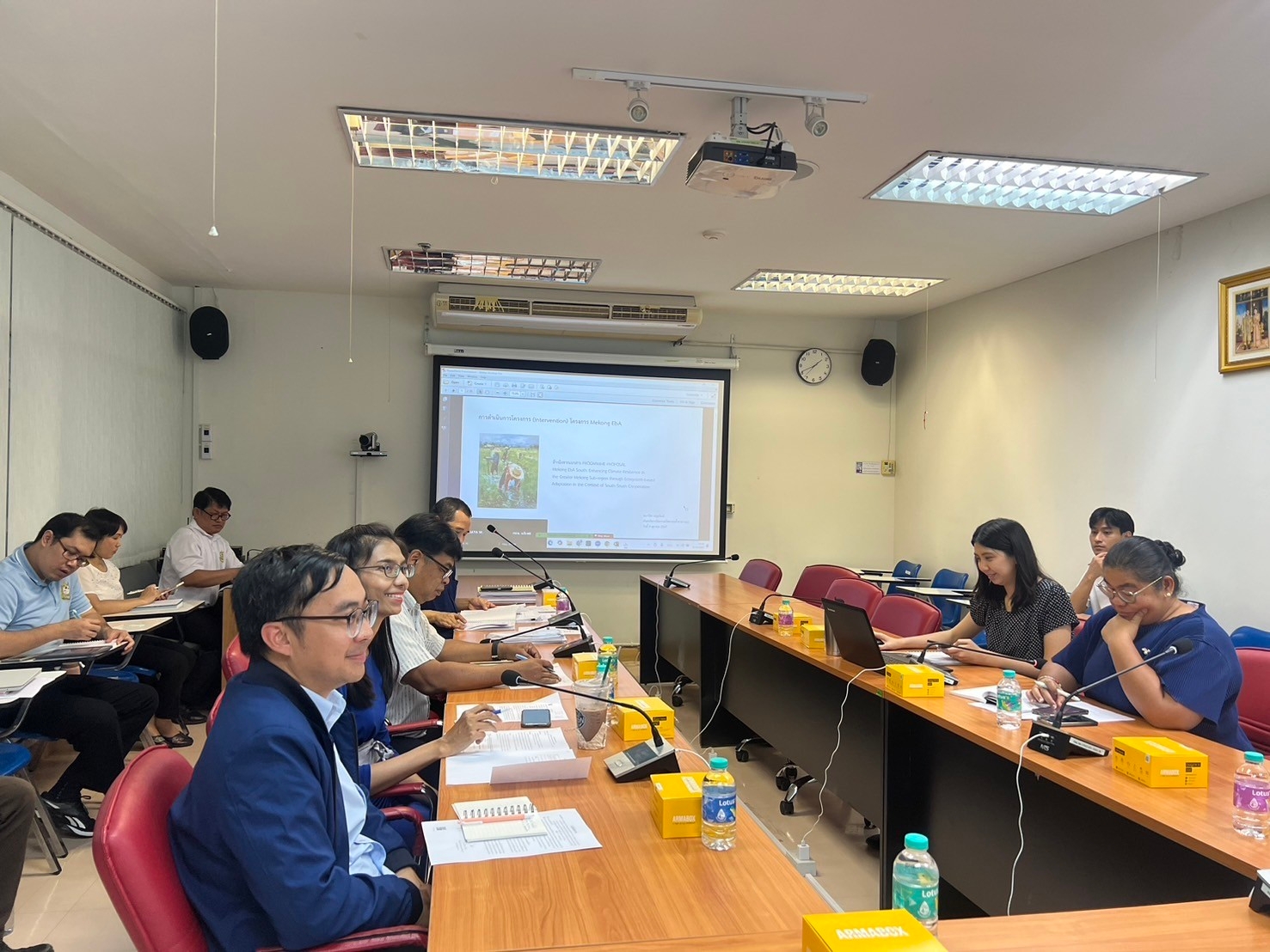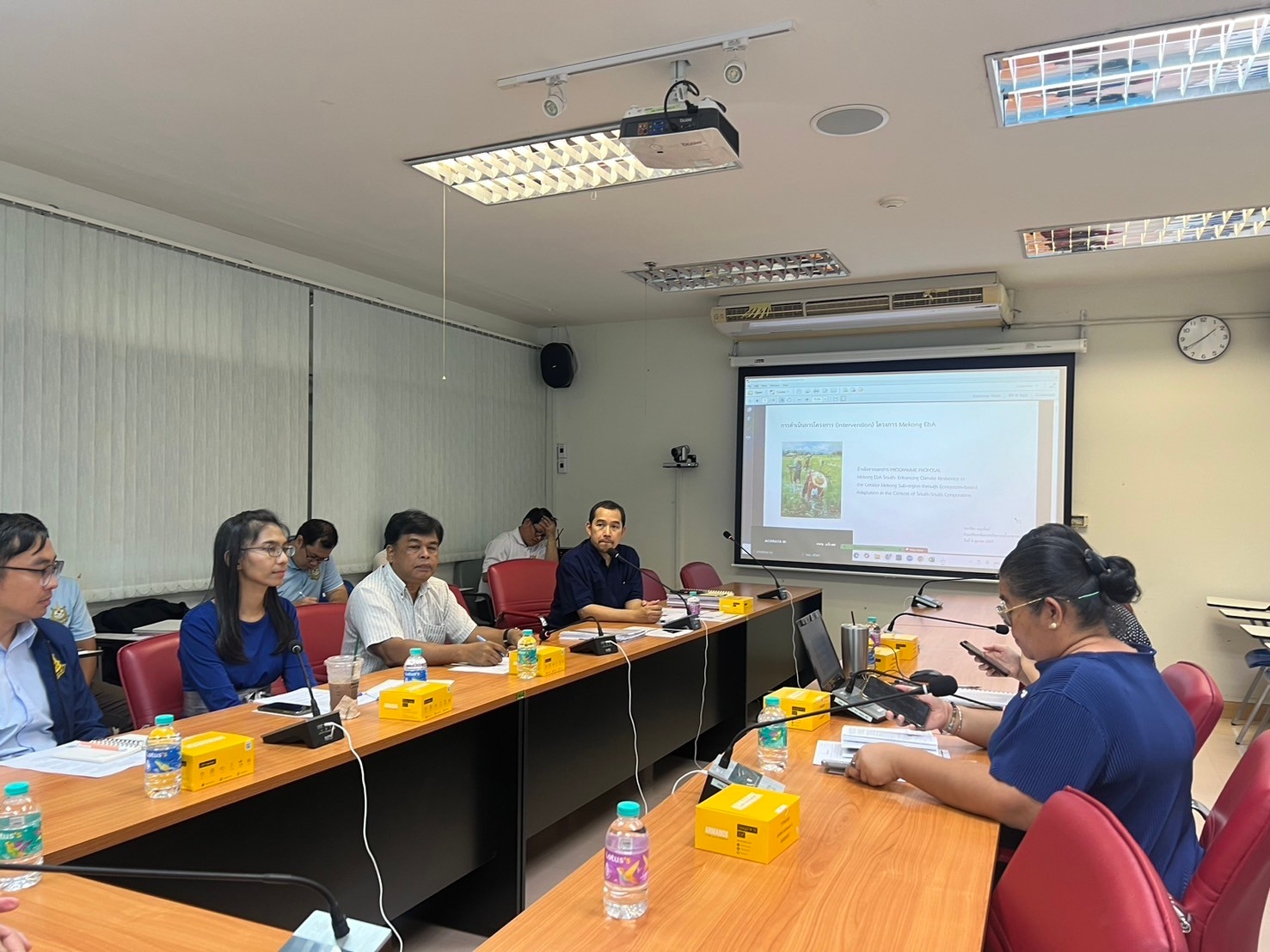 วันที่ 8 ตุลาคม 2567 เวลา 13.30 น. นายนิรุติ คูณผล ผู้เชี่ยวชาญด้านความร่วมมือระหว่างประเทศเกี่ยวกับทรัพยากรน้ำ นายชนาวัชร อรุณรัตน์ ผู้อำนวยการส่วนบริหารจัดการทรัพยากรน้ำสาธารณะ นางกานดา คูประเสริฐ ผู้อำนวยการส่วนแผนงานและประเมินผล นางสาววารุณี รักษาพล ผู้อำนวยการส่วนอนุรักษ์ทรัพยากรน้ำที่ 2 ร้อยเอ็ด นางสาวโชติรส โพธิ์ทอง นักวิเคราะห์นโยบายและแผนชำนาญการพิเศษ นายมนตรี ทั่งสุวรรณ์ นายช่างโยธาอาวุโส นายกุลวรรธน์ แก้วเก่า นักวิเทศสัมพัน์ชำนาญการ นางสาว อารยา ยศมงคล นักวิเทศสัมพัน์ชำนาญการ และเจ้าหน้าที่ที่เกี่ยวข้อง หารือการดำเนินงานและงบประมาณโครงการ แนวทางการดำเนินการภายใต้มาตรการ 4 ด้าน ได้แก่ ด้านการอาศัยระบบนิเวศ ด้านเกษตรกรรมที่ทนทานต่อสภาพภูมิอากาศ ด้านการปรับปรุงโครงสร้างพื้นฐานน้ำและการไหลของน้ำและด้านการปรับตัวของชุมชนต่อการเปลี่ยนแปลงสภาพภูมิอากาศ โครงการปรับตัวต่อการเปลี่ยนแปลงสภาพภูมิอากาศโดยอาศัยระบบนิเวศในบริบท ความร่วมมือระหว่างประเทศกำลังพัฒนาในลุ่มน้ำโขง (Mekong EbA South) ณ ห้องประชุมกองยุทธศาสตร์และแผนงาน ชั้น 10 อาคารกรมทรัพยากรน้ำ โดยผลจากการหารือจะได้กำหนดแนวทางในการขับเคลื่อนการดำเนินงานโครงการฯ ในพื้นที่ลุ่มน้ำยังต่อไป