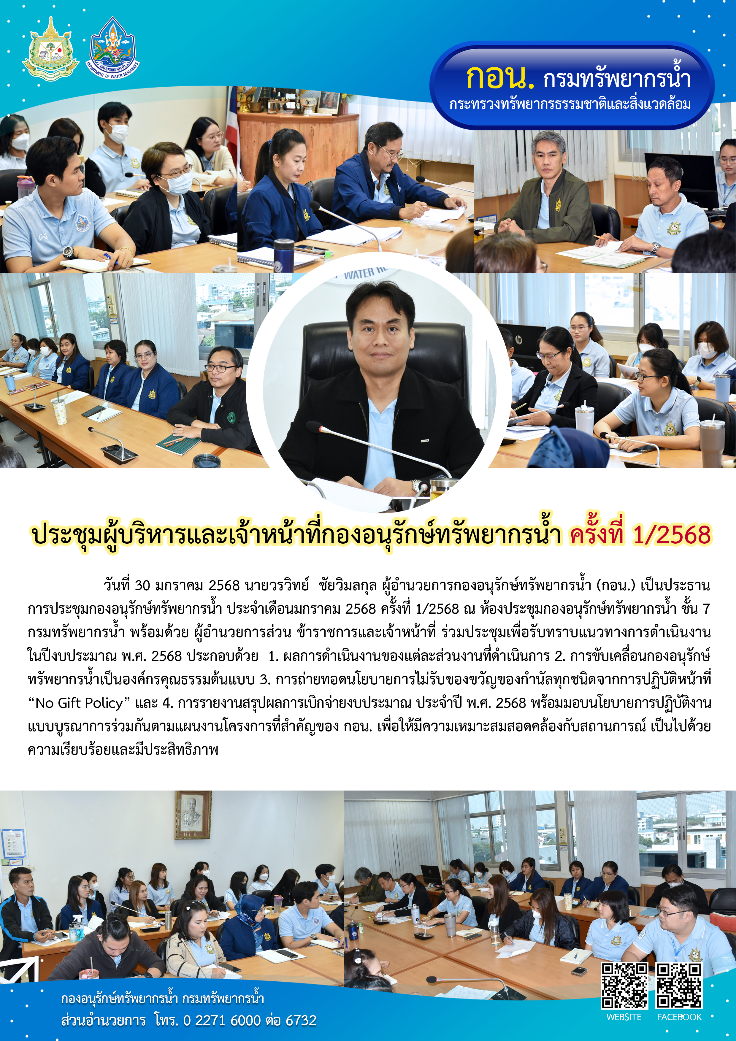 ประชุมผู้บริหารและเจ้าหน้าที่กองอนุรักษ์ทรัพยากรน้ำ ครั้งที่ 1/2568