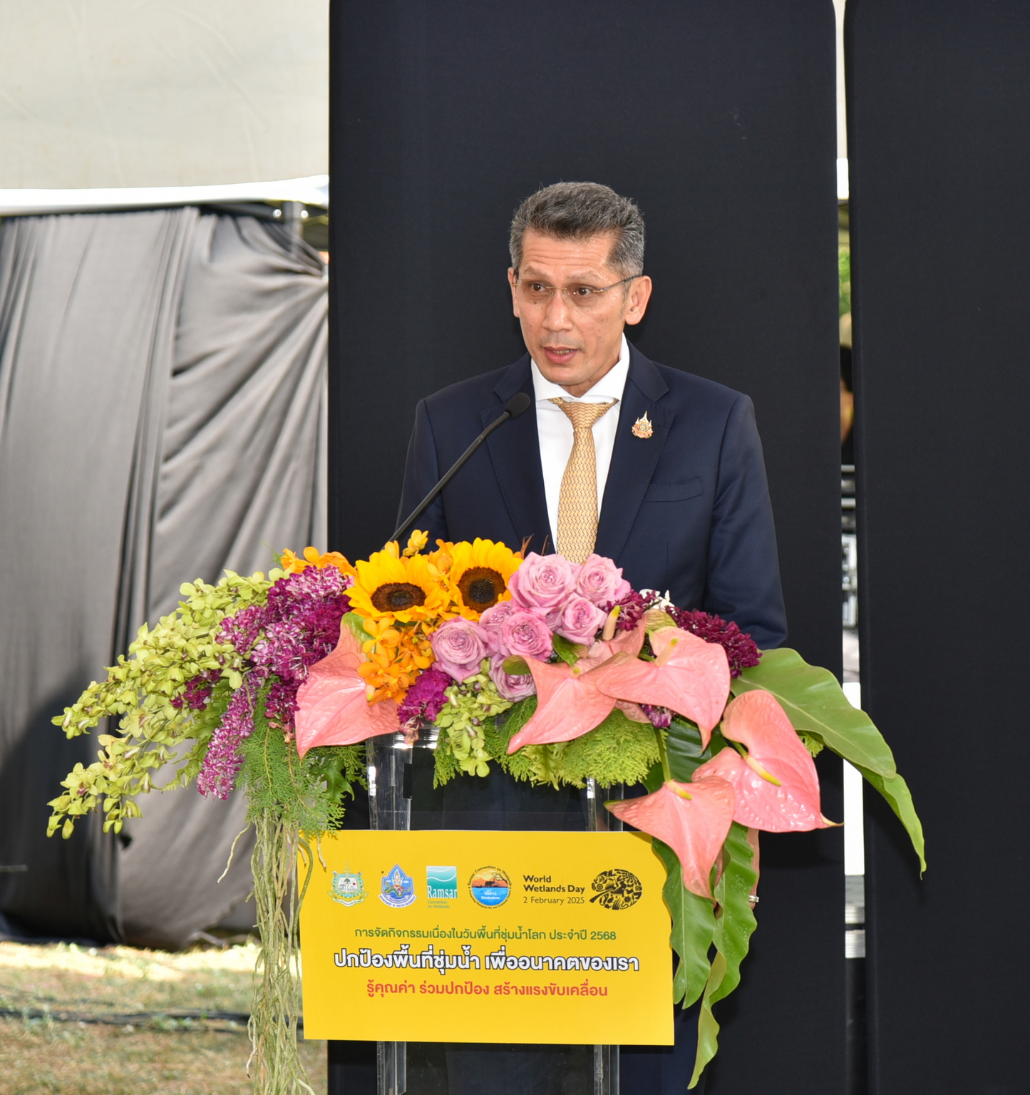 วันที่ 3 กุมภาพันธ์ 2568 นายอภิชาต ศักดิเศรษฐ์ ที่ปรึกษารัฐมนตรีว่าการกระทรวงทรัพยากรธรรมชาติและสิ่งแวดล้อม เป็นประธานเปิดงานกิจกรรมเนื่องในวันพื้นที่ชุ่มน้ำโลก ประจำปี 2568 ณ บริเวณกระโจมแตร สวนหลวง ร.9 กรุงเทพมหานคร ภายใต้แนวคิด “ปกป้องพื้นที่ชุ่มน้ำ เพื่ออนาคตของเรา - รู้คุณค่า ร่วมปกป้อง สร้างแรงขับเคลื่อน” พร้อมด้วย นายธีระชุณ บุญสิทธิ์ อธิบดีกรมทรัพยากรน้ำ ผู้บริหารกระทรวงฯ ผู้บริหารกรม ผู้แทนจากภาครัฐ ภาคเอกชน ประชาชน เยาวชน เข้าร่วม การจัดงานครั้งนี้มีวัตถุประสงค์เพื่อให้ประชาชนตระหนักและเห็นความสำคัญของพื้นที่ชุ่มน้ำ รู้คุณค่า ร่วมปกป้อง สร้างแรงขับเคลื่อนในการอนุรักษ์พื้นที่ชุ่มน้ำ ซึ่งเป็นระบบนิเวศที่มีบทบาทสำคัญในการสนับสนุนทุกชีวิต อีกทั้ง เชิญชวนทุกภาคส่วนร่วมปกป้องพื้นที่ชุ่มน้ำด้วย 3 แนวทางสำคัญ คือ หยุดมลพิษในพื้นที่ชุ่มน้ำ อนุรักษ์และจัดการพื้นที่ชุ่มน้ำอย่างยั่งยืน และฟื้นฟูพื้นที่ชุ่มน้ำในท้องถิ่น พร้อมกระตุ้นให้เผยแพร่เรื่องราวความสำคัญของพื้นที่ชุ่มน้ำไปยังสาธารณชนอย่างต่อเนื่อง โดยกิจกรรมภายในงานประกอบด้วย การเสวนาหัวข้อ “รู้คุณค่า ร่วมปกป้อง สร้างแรงขับเคลื่อน” นิทรรศการจากหน่วยงานต่าง ๆ กิจกรรมฐานการเรียนรู้สำหรับเยาวชน 5 ฐาน การแสดงดนตรีในสวน และพิธีมอบประกาศนียบัตรให้แก่โรงเรียนที่เข้าร่วมกิจกรรมในครั้งนี้