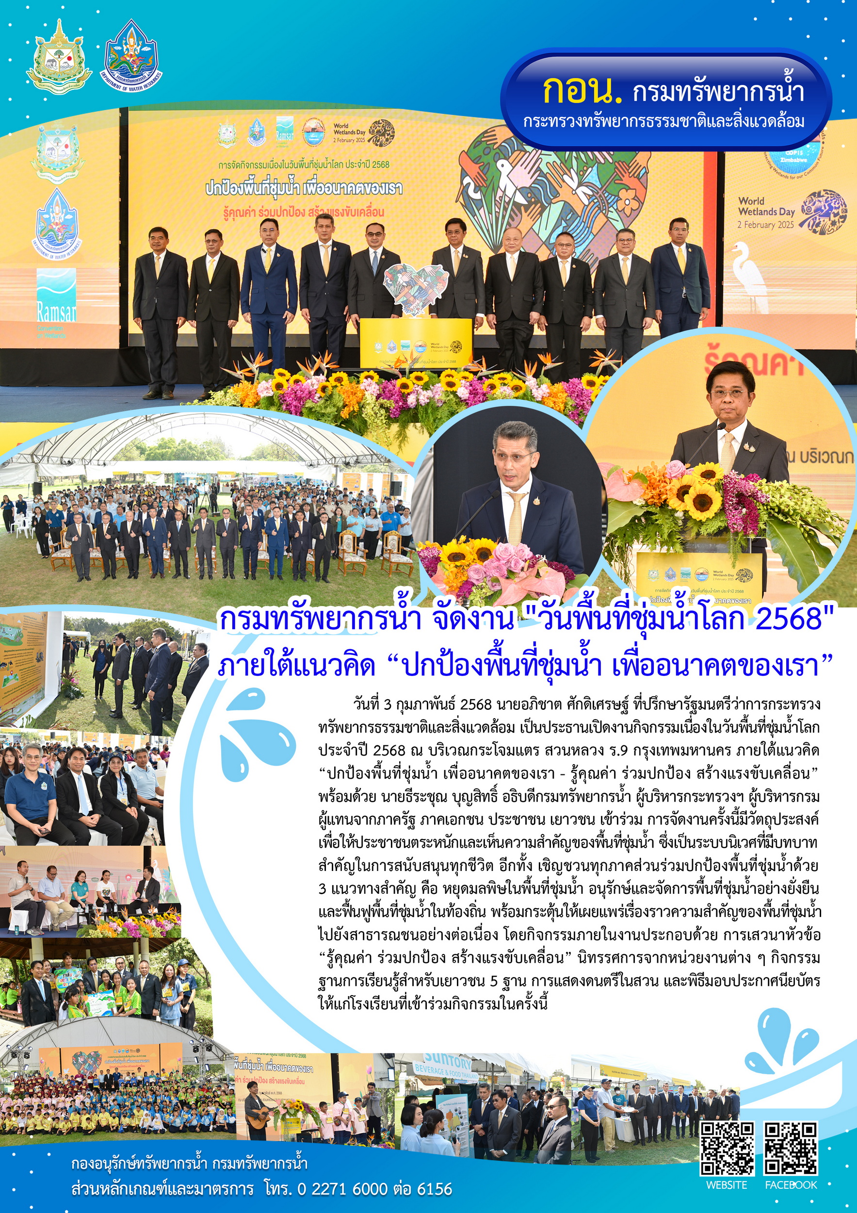 กรมทรัพยากรน้ำ จัดงาน "วันพื้นที่ชุ่มน้ำโลก 2568" ภายใต้แนวคิด “ปกป้องพื้นที่ชุ่มน้ำ เพื่ออนาคตของเรา”