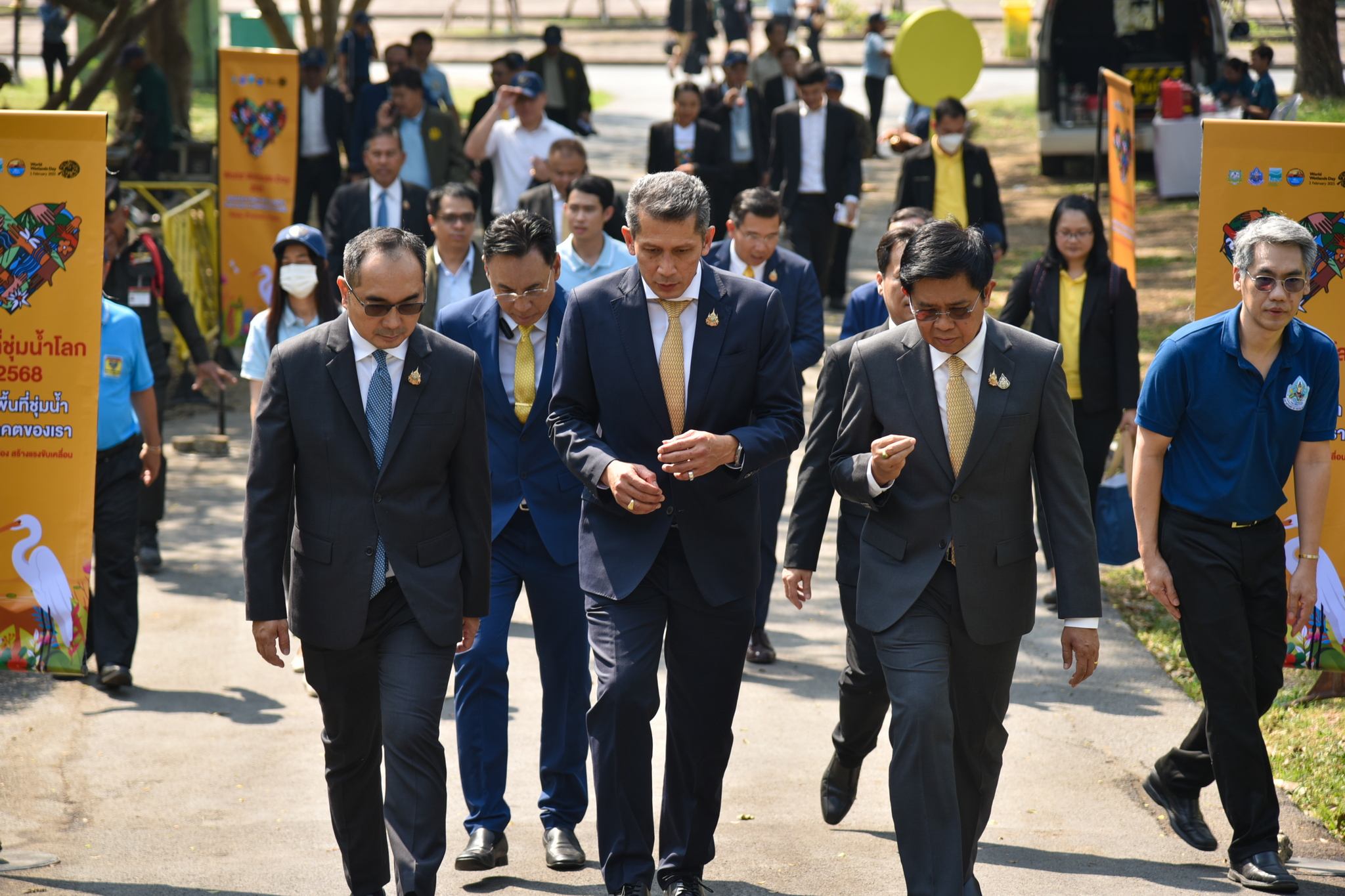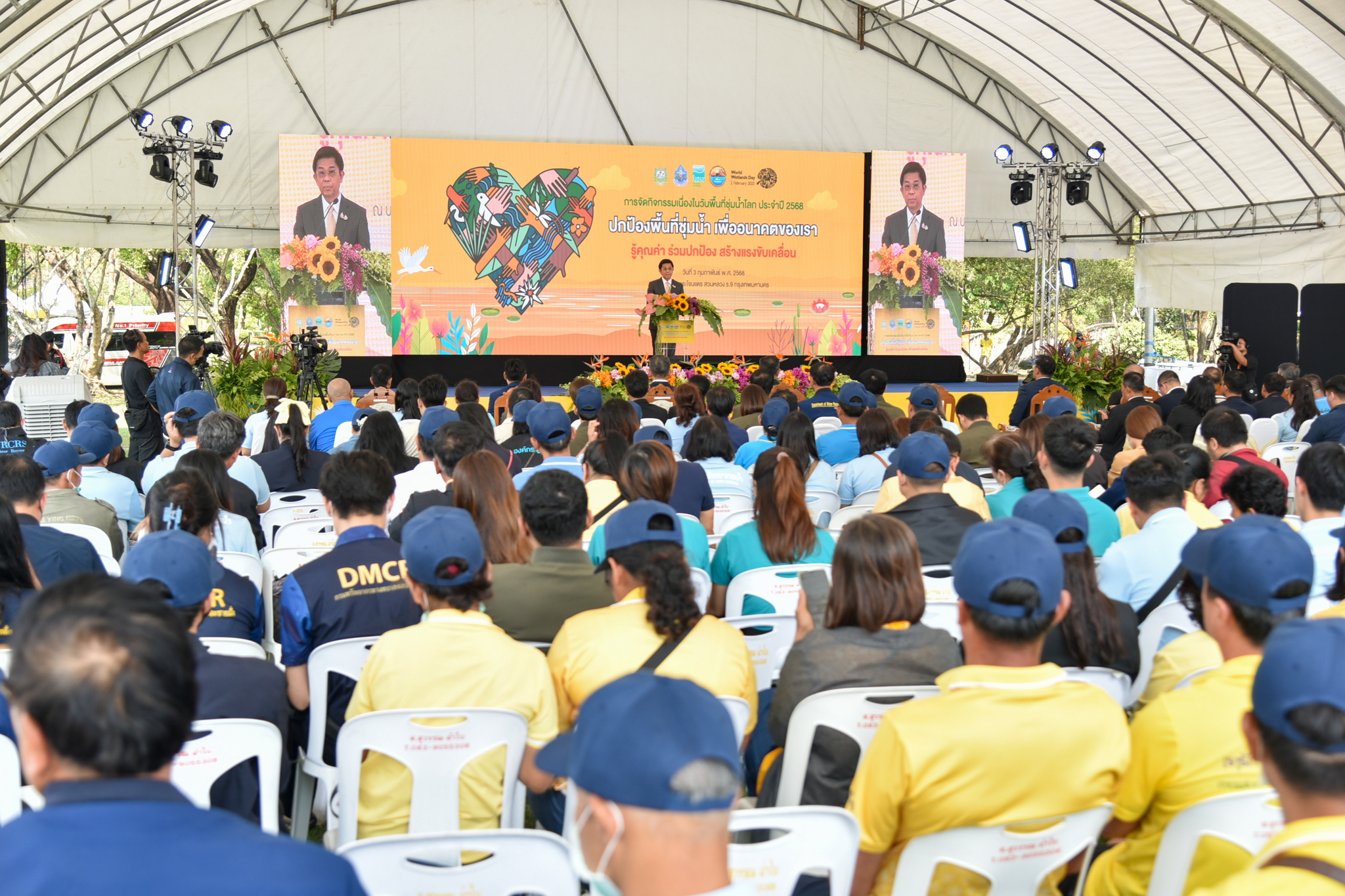 วันที่ 3 กุมภาพันธ์ 2568 นายอภิชาต ศักดิเศรษฐ์ ที่ปรึกษารัฐมนตรีว่าการกระทรวงทรัพยากรธรรมชาติและสิ่งแวดล้อม เป็นประธานเปิดงานกิจกรรมเนื่องในวันพื้นที่ชุ่มน้ำโลก ประจำปี 2568 ณ บริเวณกระโจมแตร สวนหลวง ร.9 กรุงเทพมหานคร ภายใต้แนวคิด “ปกป้องพื้นที่ชุ่มน้ำ เพื่ออนาคตของเรา - รู้คุณค่า ร่วมปกป้อง สร้างแรงขับเคลื่อน” พร้อมด้วย นายธีระชุณ บุญสิทธิ์ อธิบดีกรมทรัพยากรน้ำ ผู้บริหารกระทรวงฯ ผู้บริหารกรม ผู้แทนจากภาครัฐ ภาคเอกชน ประชาชน เยาวชน เข้าร่วม การจัดงานครั้งนี้มีวัตถุประสงค์เพื่อให้ประชาชนตระหนักและเห็นความสำคัญของพื้นที่ชุ่มน้ำ รู้คุณค่า ร่วมปกป้อง สร้างแรงขับเคลื่อนในการอนุรักษ์พื้นที่ชุ่มน้ำ ซึ่งเป็นระบบนิเวศที่มีบทบาทสำคัญในการสนับสนุนทุกชีวิต อีกทั้ง เชิญชวนทุกภาคส่วนร่วมปกป้องพื้นที่ชุ่มน้ำด้วย 3 แนวทางสำคัญ คือ หยุดมลพิษในพื้นที่ชุ่มน้ำ อนุรักษ์และจัดการพื้นที่ชุ่มน้ำอย่างยั่งยืน และฟื้นฟูพื้นที่ชุ่มน้ำในท้องถิ่น พร้อมกระตุ้นให้เผยแพร่เรื่องราวความสำคัญของพื้นที่ชุ่มน้ำไปยังสาธารณชนอย่างต่อเนื่อง โดยกิจกรรมภายในงานประกอบด้วย การเสวนาหัวข้อ “รู้คุณค่า ร่วมปกป้อง สร้างแรงขับเคลื่อน” นิทรรศการจากหน่วยงานต่าง ๆ กิจกรรมฐานการเรียนรู้สำหรับเยาวชน 5 ฐาน การแสดงดนตรีในสวน และพิธีมอบประกาศนียบัตรให้แก่โรงเรียนที่เข้าร่วมกิจกรรมในครั้งนี้