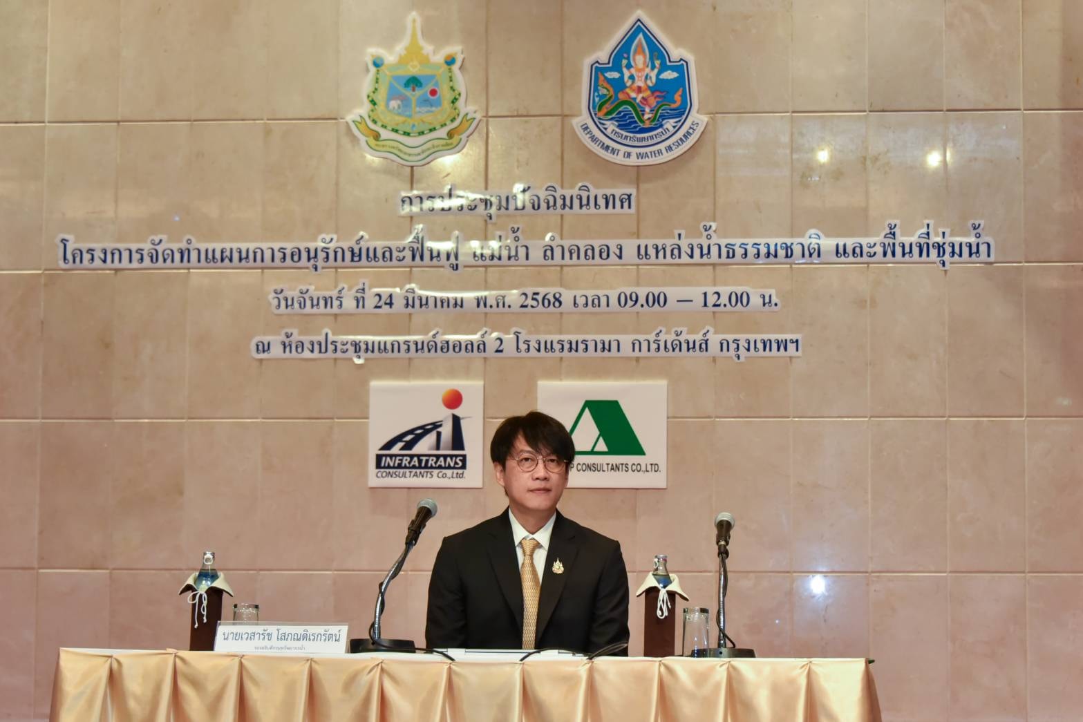 วันนี้ (24 มี.ค. 68) นายเวสารัช โสภณดิเรกรัตน์ รองอธิบดีกรมทรัพยากรน้ำ เป็นประธานการประชุมปัจฉิมนิเทศโครงการค่าใช้จ่ายในการจัดทำแผนการอนุรักษ์และฟื้นฟูแม่น้ำ ลำคลอง แหล่งน้ำธรรมชาติ และพื้นที่ชุ่มน้ำ พร้อมด้วยผู้แทนหน่วยงานที่เกี่ยวข้อง นายวรวิทย์ ชัยวิมลกุล ผู้อำนวยการกองอนุรักษ์ทรัพยากรน้ำและเจ้าหน้าที่เข้าร่วม โดยโครงการฯ มีวัตถุประสงค์เพื่อรวบรวม ศึกษา วิเคราะห์ รายงานวิจัยและกฎหมายที่เกี่ยวข้อง รวมถึงรวบรวมสภาพปัญหาในปัจจุบัน แนวโน้มที่อาจเกิดขึ้นจากผลกระทบของการเปลี่ยนแปลงสภาพภูมิอากาศ และความต้องการของประชาชนที่มีส่วนได้ส่วนเสียในแม่น้ำ ลำคลอง แหล่งน้ำธรรมชาติ และพื้นที่ชุ่มน้ำ อีกทั้ง จัดทำร่างแผนหลักและแผนปฏิบัติการระยะสั้น ระยะยาว และค่าเป้าหมายการอนุรักษ์ฟื้นฟู แม่น้ำ ลำคลอง แหล่งน้ำธรรมชาติ และพื้นที่ชุ่มน้ำ โดยการมีส่วนร่วมของประชาชนและผู้ที่มีส่วนได้ส่วนเสีย ณ ห้องประชุมแกรนด์ฮอลล์ 2 ชั้นเอ็ม โรงแรมรามา การ์เด้นส์ กรุงเทพฯ