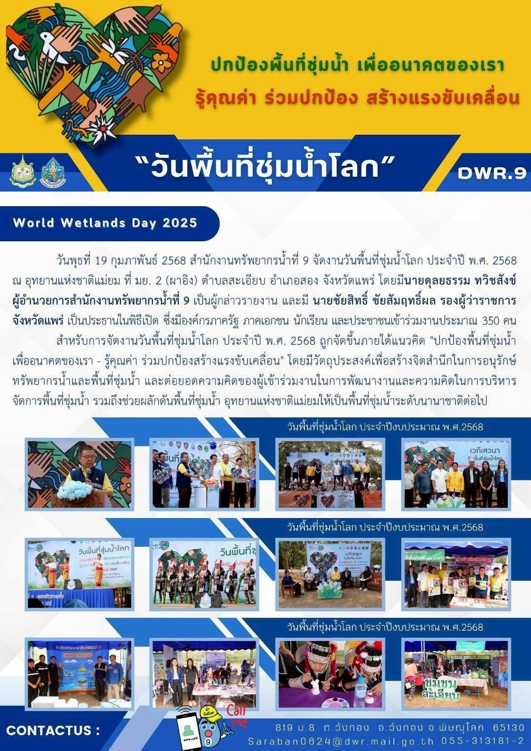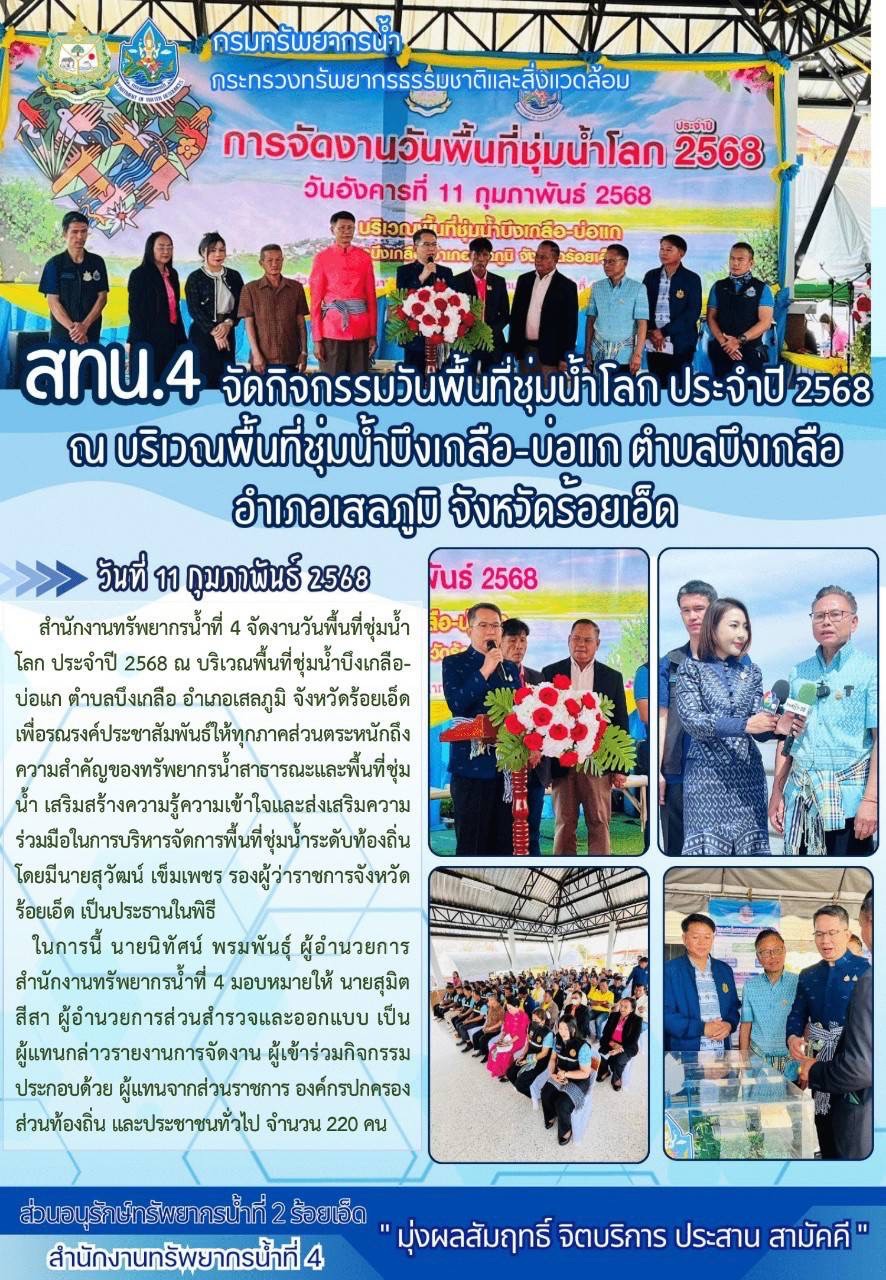 การจัดกิจกรรมเนื่องในวันพื้นที่ชุ่มน้ำโลก ประจำปี 2568 โดย กรมทรัพยากรน้ำ ส่วนกลางและส่วนภูมิภาค