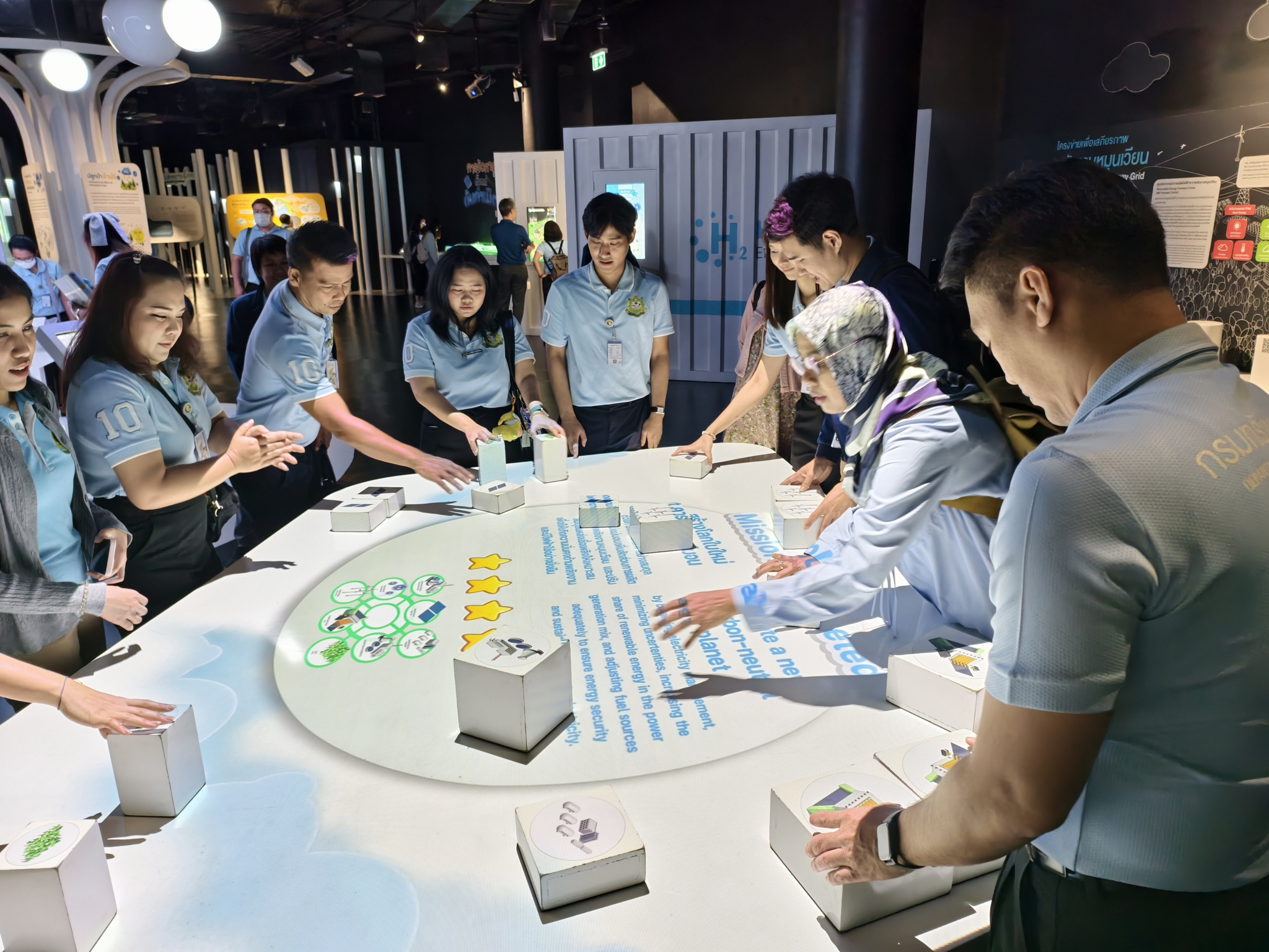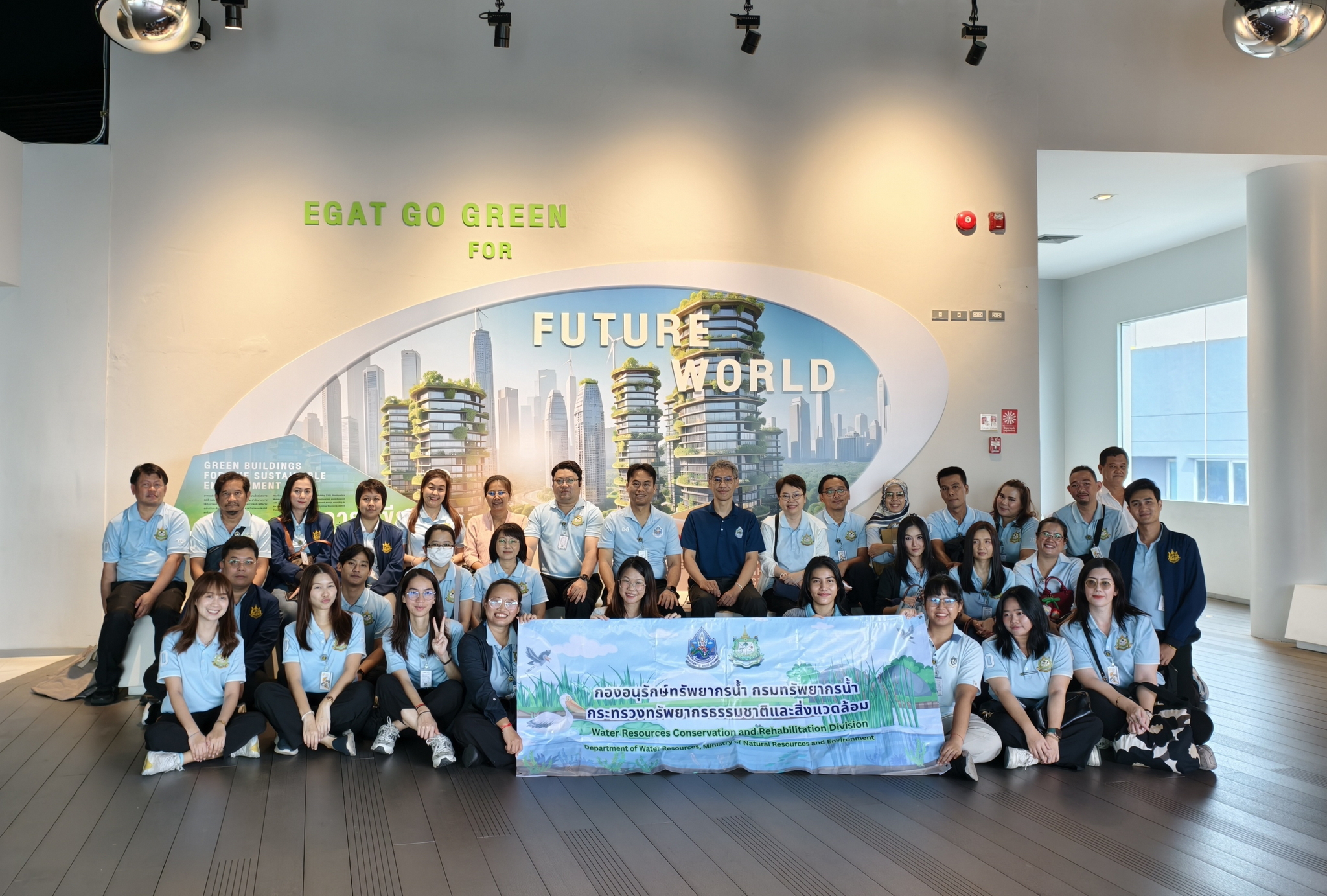 วันที่ 16 พฤษภาคม 2568 นายวรวิทย์ ชัยวิมลกุล ผู้อำนวยการกองอนุรักษ์ทรัพยากรน้ำ (กอน.) พร้อมด้วย นายพิพัฒน์ เรืองงาม ผู้เชี่ยวชาญด้านพื้นที่ชุ่มน้ำ ผู้อำนวยการส่วน ข้าราชการและเจ้าหน้าที่ ศึกษาดูงานศูนย์การเรียนรู้ การไฟฟ้าฝ่ายผลิตแห่งประเทศไทย (กฟผ.) สำนักงานกลาง อำเภอบางกรวย จังหวัดนนทบุรี โดยนิทรรศการที่จัดแสดงแบ่งออกเป็น 4 โซน ประกอบด้วย โซน 1 จุดประกาย ห้องนิทรรศการหมุนเวียน โซน 2 จากแสงแรกสู่นิรันดร์ โซน 3 คืนสู่สมดุล โซน 4 สายน้ำแห่งความภูมิใจ ซึ่งจัดแสดงนิทรรศการให้ความรู้ภายใต้แนวคิด “โลกสมดุลใหม่ Right คาร์บอน