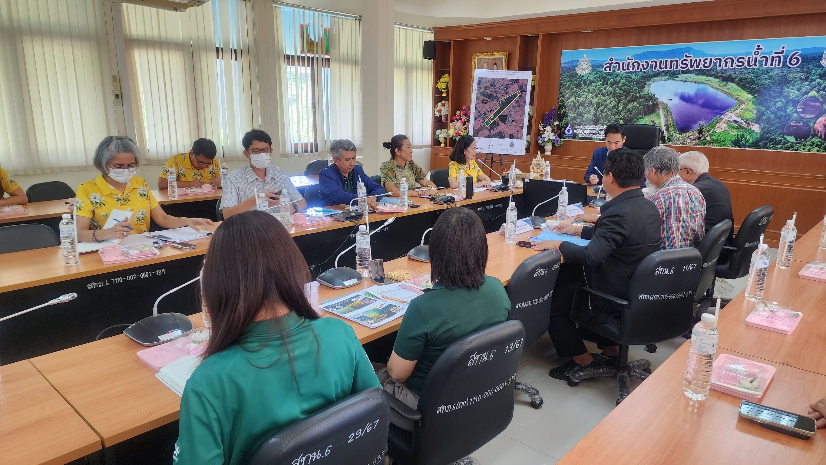 ผู้อำนวยการส่วนอำนวยการ และผู้อำนวยการส่วนอนุรักษ์ทรัพยากรน้ำที่ 1 - 4 ณ ห้องประชุมสำนักงานทรัพยากรน้ำที่ 6 จังหวัดปราจีนบุรี
