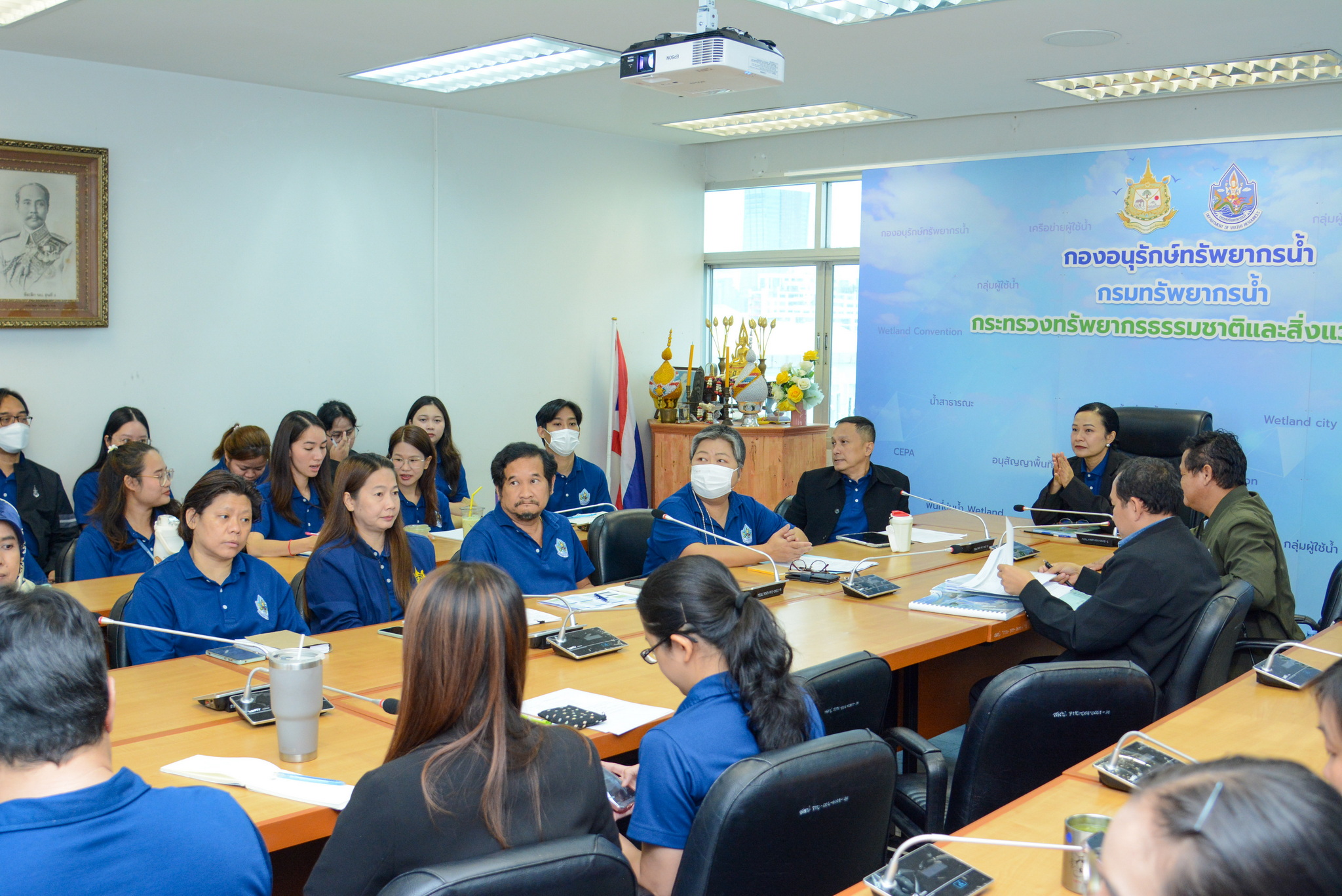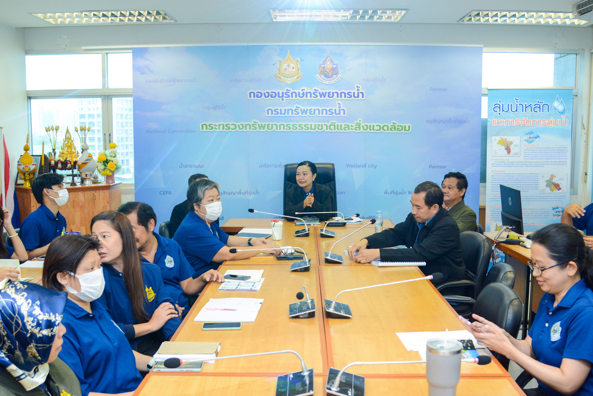 วันที่ 24 มิถุนายน 2568 นางสาวบุญธิดา เปล่งแสง ผู้อำนวยการกองอนุรักษ์ทรัพยากรน้ำ (กอน.)เป็นประธาน การประชุมรับมอบนโยบายและติดตามผลการดำเนินงานกองอนุรักษ์ทรัพยากรน้ำ ณ ห้องประชุมกองอนุรักษ์ทรัพยากรน้ำ ชั้น 7 กรมทรัพยากรน้ำ พร้อมด้วย นายพิพัฒน์ เรืองงาม ผู้เชี่ยวชาญด้านพื้นที่ชุ่มน้ำ ผู้อำนวยการส่วน ข้าราชการและเจ้าหน้าที่ ร่วมประชุมเพื่อรับมอบนโยบายการปฏิบัติงานจากผู้อำนวยการ พร้อมทั้งติดตามผลการดำเนินงานโครงการที่สำคัญของแต่ละส่วนงาน และรายงานสรุปผลการเบิกจ่ายงบประมาณ ประจำปี พ.ศ. 2568 โดยมุ่งเน้นการขับเคลื่อนการดำเนินงานแบบบูรณาการร่วมกันให้เป็นไปด้วยความเรียบร้อยและมีประสิทธิภาพ