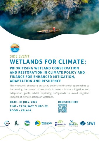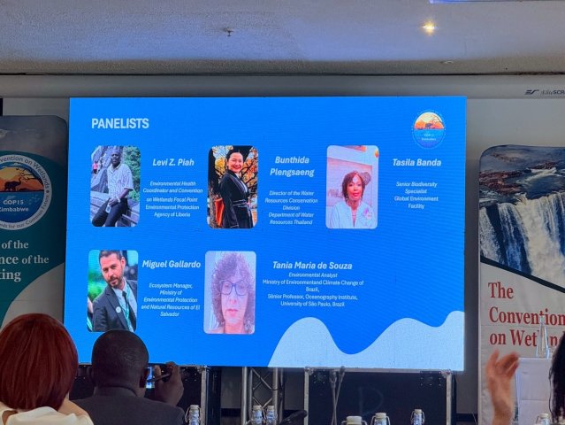 วันพุธที่ 30 ก.ค. 2568 เวลา 13.30 – 14.30 น. กรมทรัพยากรน้ำ โดยกองอนุรักษ์ทรัพยากรน้ำ เข้าร่วมกิจกรรมคู่ขนาน ในการประชุมสมัชชาภาคีอนุสัญญาว่าด้วยพื้นที่ชุ่มน้ำ (Ramsar COP 15 Side Event) โดยร่วมเสวนาในหัวข้อ “Wetlands for climate: prioritizing wetland conservation and restoration in climate policy and finance for enhanced mitigation, adaptation and resilience” ซี่งจัดขึ้นเพื่อนำเสนอนโยบาย แนวทางปฏิบัติ และมาตรการทางการเงิน ในการใช้ศักยภาพของพื้นที่ชุ่มน้ำเพื่อการบรรลุเป้าหมายด้านการลดก๊าซเรือนกระจก (Mitigation) และการปรับตัวต่อการเปลี่ยนแปลงสภาพภูมิอากาศ (Adaptation) พร้อมทั้งหารือเกี่ยวกับมาตรการป้องกันผลกระทบในทางลบจาก climate action ต่อพื้นที่ชุ่มน้ำ เพื่อกำหนดท่าทีในการอนุรักษ์และฟื้นฟูพื้นที่ชุ่มน้ำให้เป็นแนวทางหลักในการแก้ไขปัญหาสภาพภูมิอากาศ ที่จะกำหนดผลลัพธ์ของ COP30 ในระดับประเทศ โดยมีผู้เข้าร่วมเสวนาประกอบด้วย ผู้แทนกระทรวงสิ่งแวดล้อมและการเปลี่ยนแปลงสภาพภูมิอากาศจากบราซิล ผู้แทนกระทรวงทรัพยากรธรรมชาติและสิ่งแวดล้อมจากเอลซัลวาดอร์ ผู้แทนกองทุนสิ่งแวดล้อมโลก ผู้แทนองค์การอาหารและการเกษตรแห่งสหประชาชาติ