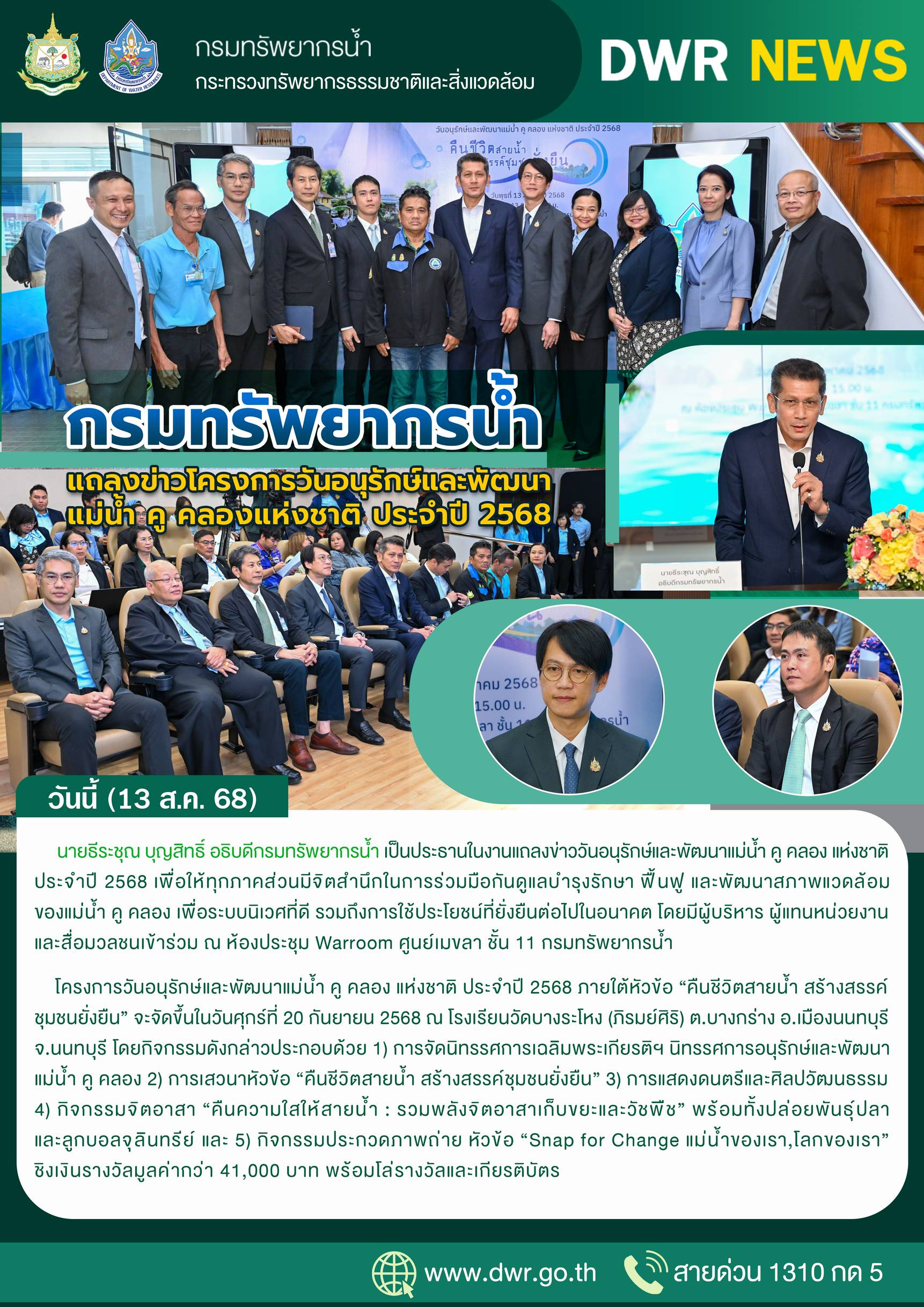 กรมทรัพยากรน้ำ แถลงข่าวโครงการวันอนุรักษ์และพัฒนาแม่น้ำ คู คลองแห่งชาติ ประจำปี 2568 “คืนชีวิตสายน้ำ สร้างสรรค์ชุมชนยั่งยืน”