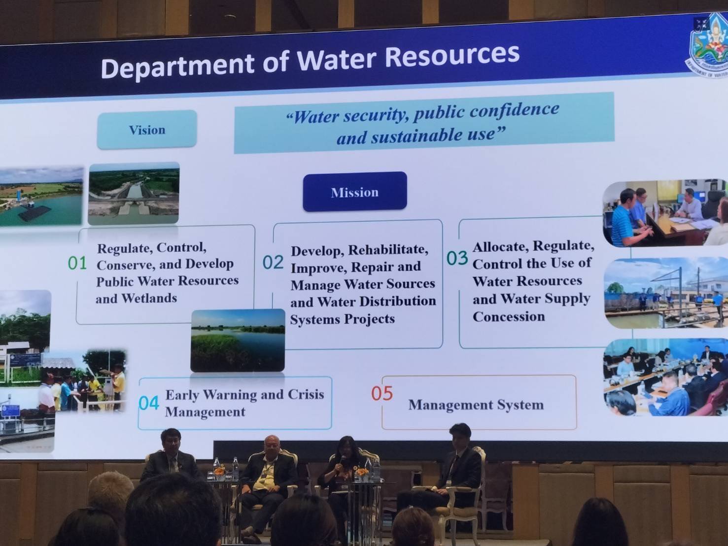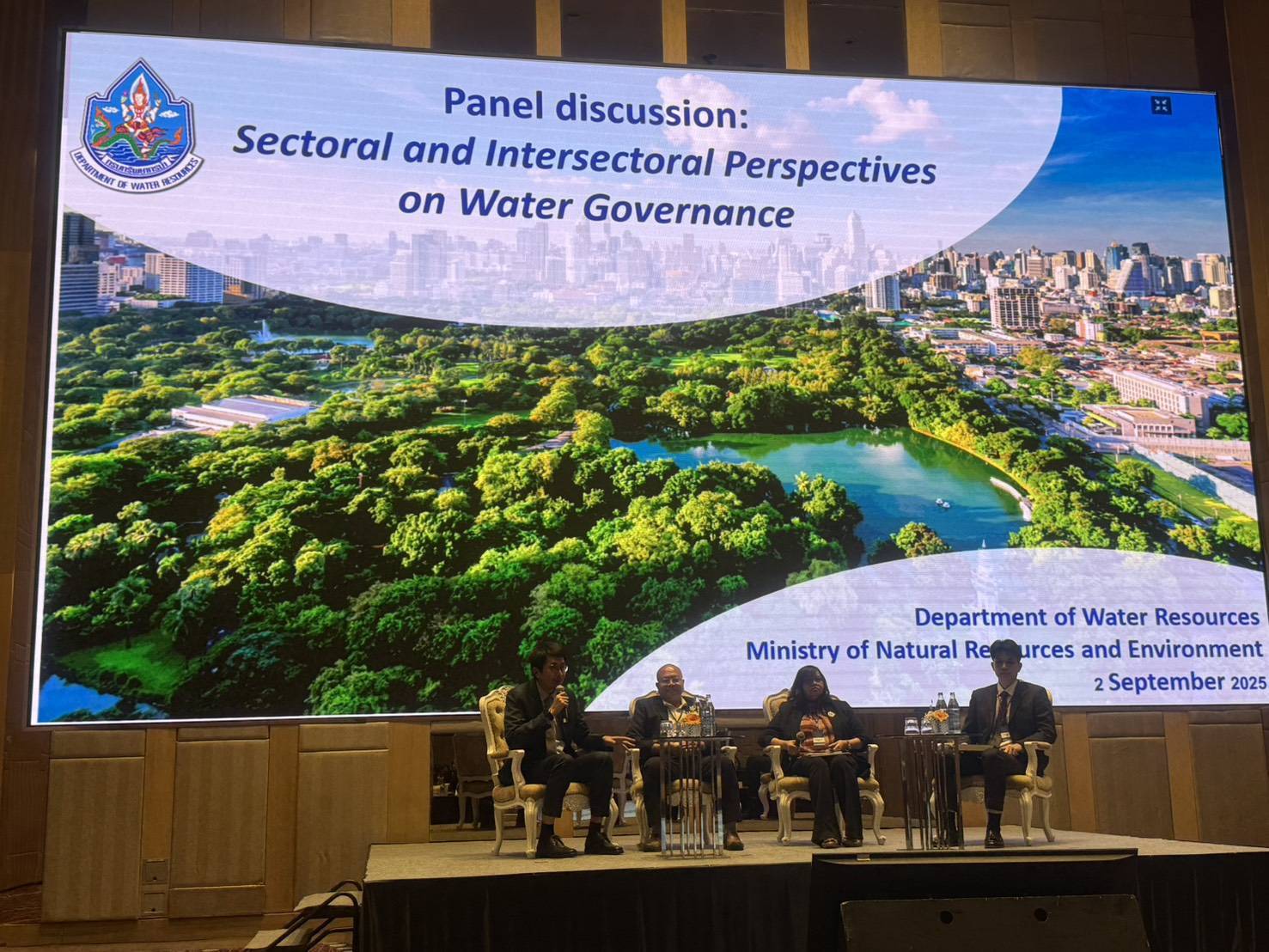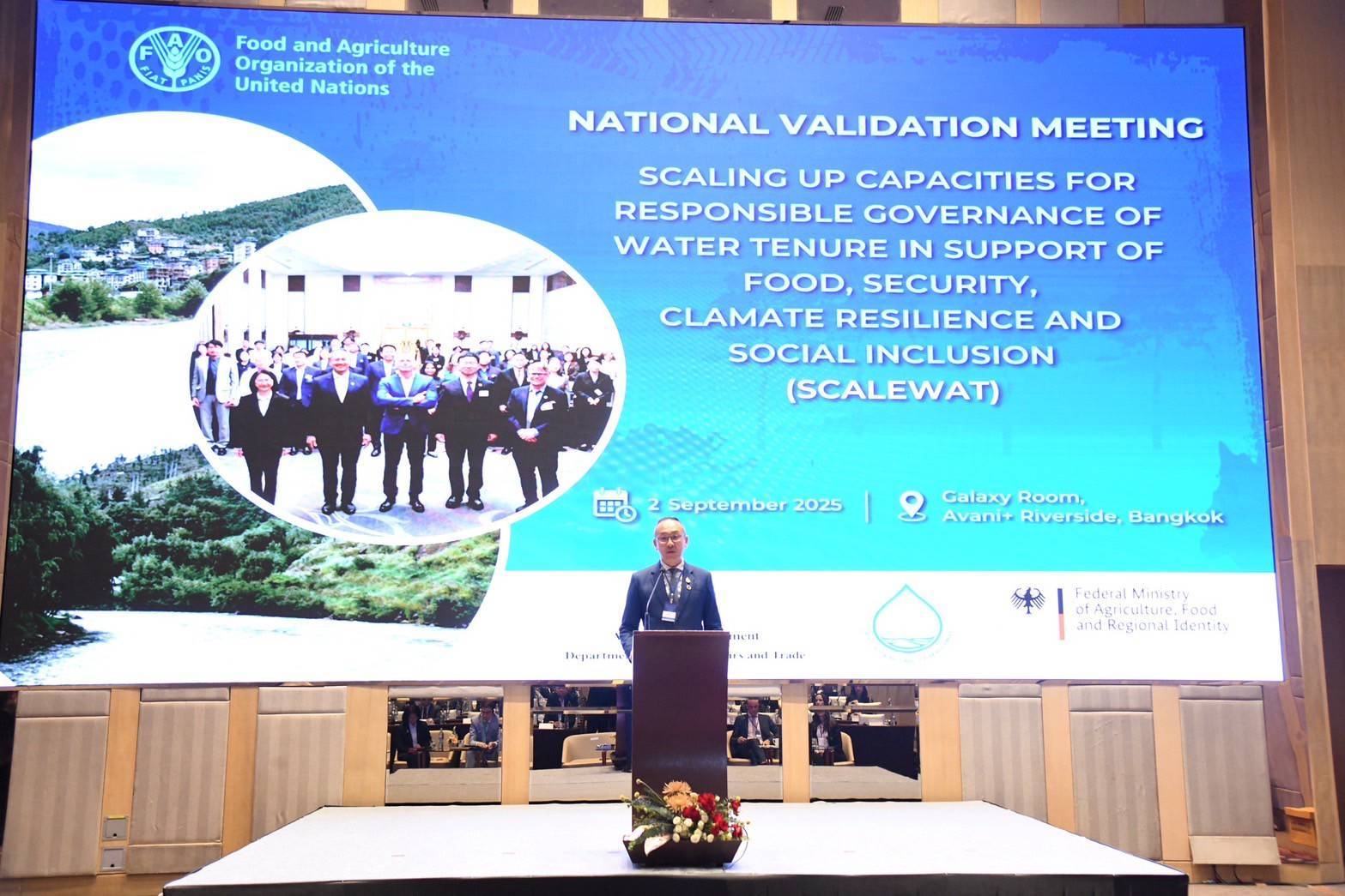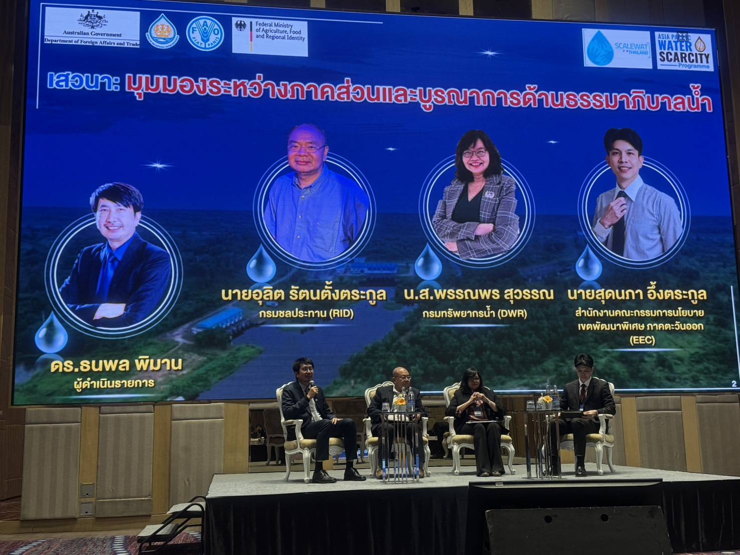 เมื่อวันที่ 2 กันยายน 2568 กรมทรัพยากรน้ำ เข้าร่วมการประชุมเชิงปฏิบัติการและเสวนาระดับประเทศ เพื่อรับฟังความคิดเห็นต่อผลการศึกษาภายใต้โครงการยกระดับขีดความสามารถในการกำกับดูแลรูปแบบการถือครองทรัพยากรน้ำตามหลักธรรมาภิบาล เพื่อสนับสนุนความมั่นคงทางอาหาร ความสามารถในการรับมือต่อการเปลี่ยนแปลงสภาพภูมิอากาศ และการมีส่วนร่วมทางสังคม (ScaleWat) ณ ห้องประชุม Galaxy ชั้น 10 โรงแรม อวานี พลัส ริเวอร์ไซต์ เขตธนบุรี กรุงเทพฯ โดยมีผู้แทนกองอนุรักษ์ทรัพยากรน้ำ กองการจัดสรรน้ำ กองยุทธศาสตร์และแผนงาน และสำนักงานทรัพยากรน้ำที่ 2 เข้าร่วมการประชุมในฐานะคณะอนุกรรมการและคณะทำงานด้านเทคนิค โครงการ FAO – Australia Asia Pacific Water Scarcity Programme และคณะทำงานโครงการ ScaleWat ทั้งนี้ การประชุมดังกล่าว จัดขึ้นโดยสำนักงานทรัพยากรน้ำแห่งชาติ (สทนช.) และองค์การอาหารและเกษตรแห่งสหประชาชาติ (FAO) ภายใต้การดำเนินโครงการ ScaleWat ที่ให้ความสำคัญกับการกำกับดูแลรูปแบบการถือครองน้ำ และการบริหารจัดการสิทธิการใช้น้ำ โดยมีพื้นที่นำร่องคือ ลุ่มน้ำประแสร์ และ โครงการ FAO – Australia Asia Pacific Water Scarcity Programme ที่ให้ความสำคัญกับการจัดทำบัญชีน้ำ และการจัดทำแผนปฏิบัติการป้องกันการขาดแคลนน้ำ โดยมีพื้นที่ลุ่มน้ำป่าสักเป็นลุ่มน้ำนำร่อง ในการนี้ ผู้แทนกองการจัดสรรน้ำ เข้าร่วมเสวนาในหัวข้อ “มุมมองระหว่างภาคส่วนและบูรณาการด้านธรรมาภิบาล” (Sectoral and Intersectoral Perspectives on Water Governance) ร่วมกับผู้แทนจากกรมชลประทาน และสำนักงานคณะกรรมการนโยบายเขตพัฒนาพิเศษภาคตะวันออก (EEC) อีกด้วย