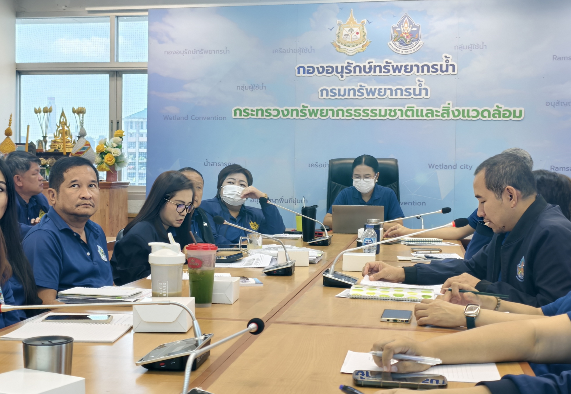 วันที่ 2 ตุลาคม 2568 นางสาวบุญธิดา เปล่งแสง ผู้อำนวยการกองอนุรักษ์ทรัพยากรน้ำ (กอน.) เป็นประธาน การประชุมกองอนุรักษ์ทรัพยากรน้ำ ประจำเดือนตุลาคม 2568 ครั้งที่ 3/2568 ณ ห้องประชุมกองอนุรักษ์ทรัพยากรน้ำ ชั้น 7 กรมทรัพยากรน้ำ พร้อมด้วย นายพงษ์พันธุ์ สุรินทร์ นักวิเคราะห์นโยบายและแผนชำนาญการพิเศษ รักษาการในตำแหน่ง ผู้เชี่ยวชาญด้านส่งเสริมและประสานมวลชน ผู้อำนวยการส่วน ข้าราชการและเจ้าหน้าที่ ร่วมประชุมเพื่อรับมอบนโยบายการปฏิบัติงานในปีงบประมาณ พ.ศ 2569 จากผู้อำนวยการ พร้อมทั้งรายงานผลการดำเนินงานประจำปีงบประมาณ พ.ศ. 2568 ของแต่ละส่วนงาน ทั้งนี้ ร่วมกันพิจารณางบประมาณรายจ่ายประจำปี 2569 และแผนปฏิบัติงานประจำปีงบประมาณ พ.ศ. 2569 และกิจกรรม Big cleaning day กองอนุรักษ์ทรัพยากรน้ำ โดยมุ่งเน้นการขับเคลื่อนการดำเนินงานแบบบูรณาการร่วมกันจากทุกส่วนงาน ให้เป็นไปด้วยความเรียบร้อยและมีประสิทธิภาพ