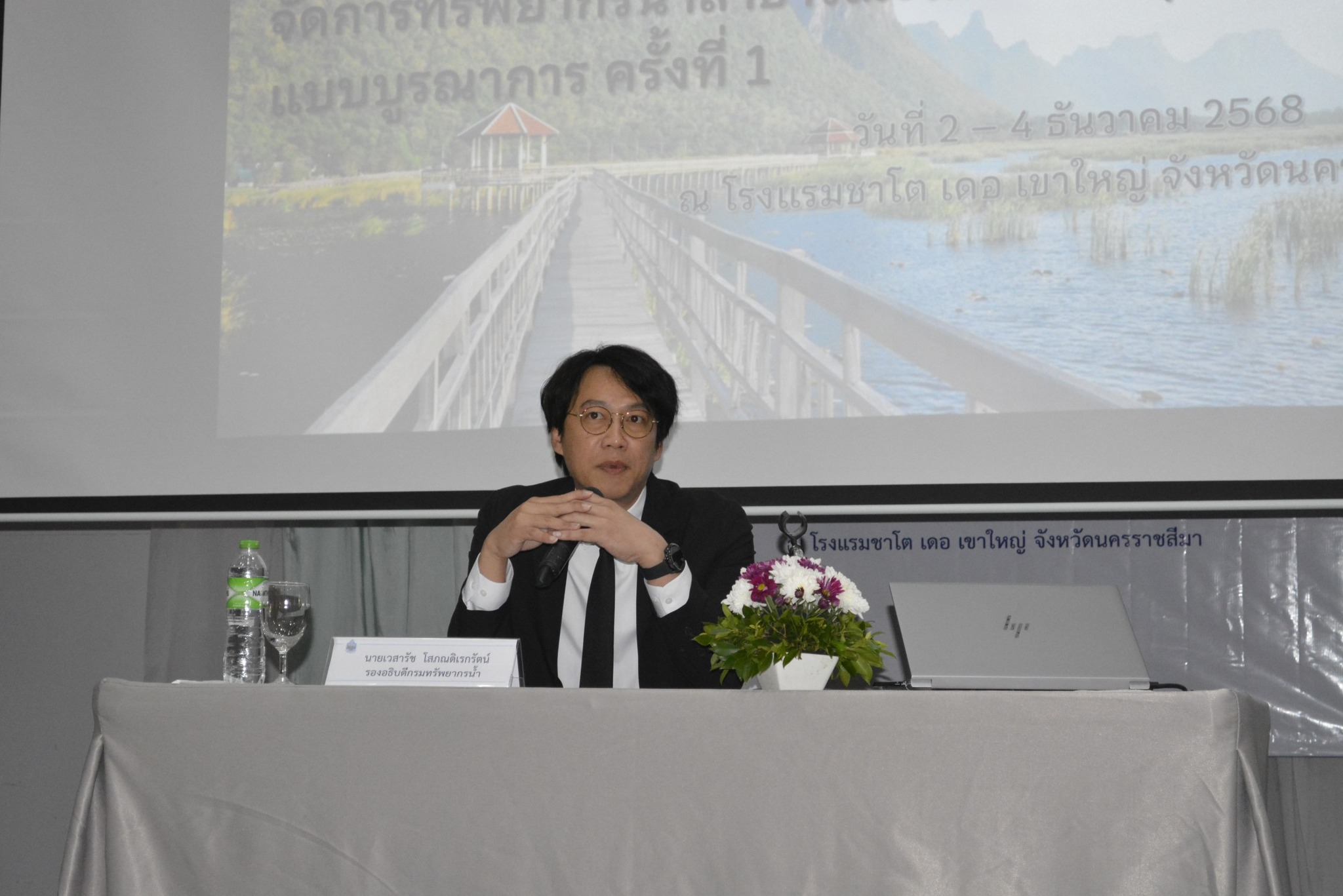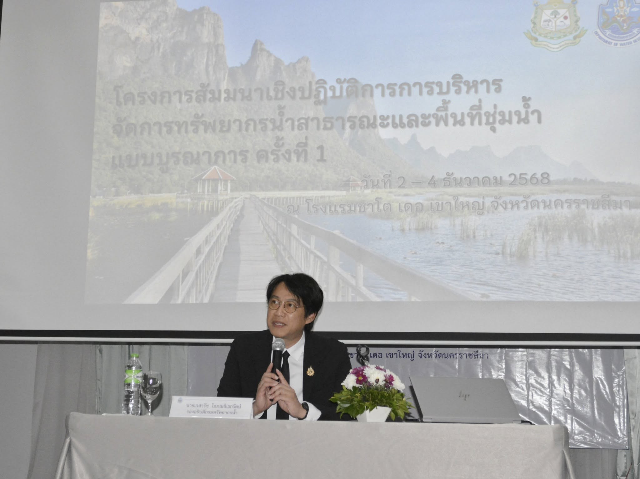 วันนี้ (2 ธันวาคม 2568) นายเวสารัช โสภณดิเรกรัตน์ รองอธิบดีกรมทรัพยากรน้ำ เป็นประธานในพิธีเปิดโครงการสัมมนาเชิงปฏิบัติการ การบริหารจัดการทรัพยากรน้ำสาธารณะและพื้นที่ชุ่มน้ำแบบบูรณาการ ครั้งที่ 1 ประจำปีงบประมาณ 2569 โดยมีข้าราชการและเจ้าหน้าที่กรมทรัพยากรน้ำ จากส่วนกลางและจากสำนักงานทรัพยากรน้ำ ที่ 1 – 11 จำนวน 160 คน เข้าร่วมการสัมมนาฯ ณ โรงแรมชาโต เดอ เขาใหญ่ จังหวัดนครราชสีมาการสัมมนาฯ ครั้งนี้ จัดขึ้นระหว่างวันที่ 2 - 4 ธันวาคม 2568 โดยมีวัตถุประสงค์เพื่อพัฒนาความรู้และเพิ่มพูนทักษะในการปฏิบัติงานด้านพื้นที่ชุ่มน้ำ รวมถึงเป็นเวทีในการร่วมกันวางแนวทางการบริหารจัดการทรัพยากรน้ำสาธารณะและพื้นที่ชุ่มน้ำที่สอดรับกับการเปลี่ยนแปลงที่เกิดขึ้นตามนโยบายของรัฐบาล พร้อมรับฟังปัญหา อุปสรรค และแลกเปลี่ยนข้อคิดเห็น เพื่อให้การดำเนินงานการบริหารจัดการทรัพยากรน้ำสาธารณะและพื้นที่ชุ่มน้ำเป็นไปอย่างมีประสิทธิภาพ และเป็นไปในทิศทางเดียวกัน