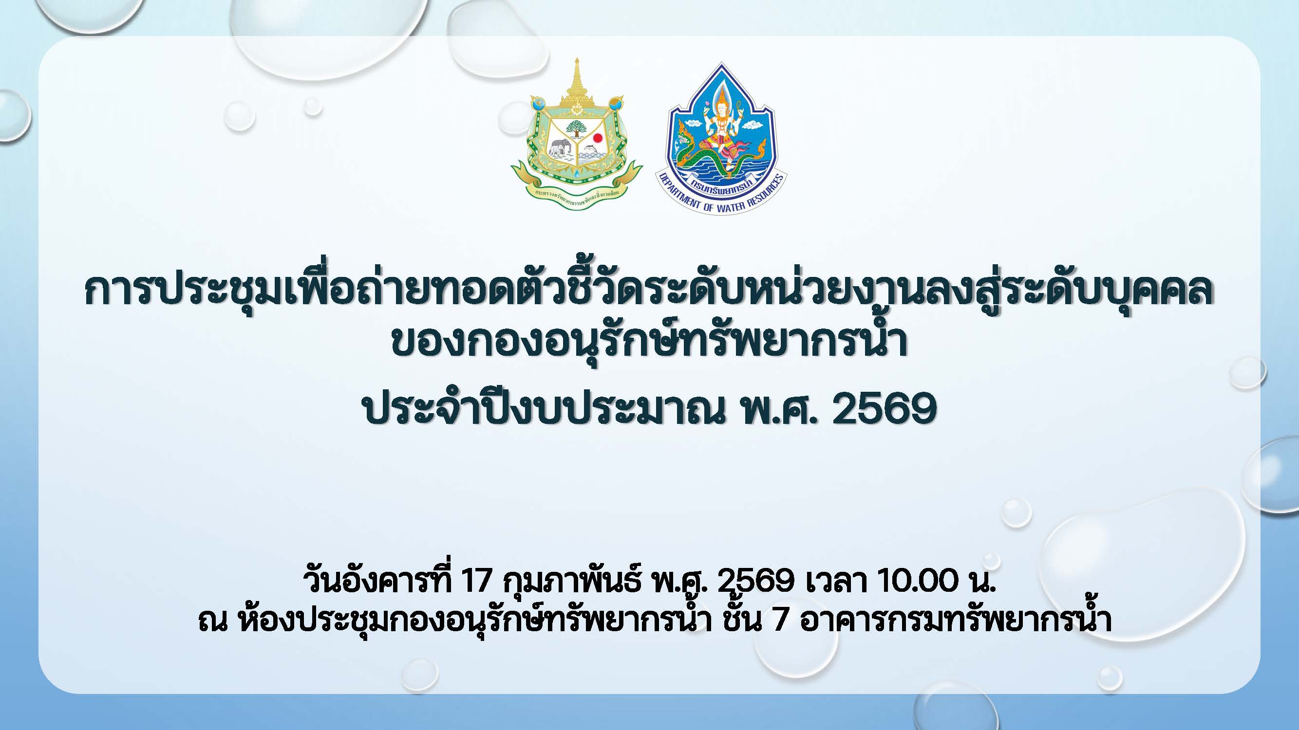กอน. จัดประชุมเพื่อถ่ายทอดตัวชี้วัดระดับหน่วยงานลงสู่ระดับบุคคลของกองอนุรักษ์ทรัพยากรน้ำ ประจำปีงบประมาณ พ.ศ. 2569