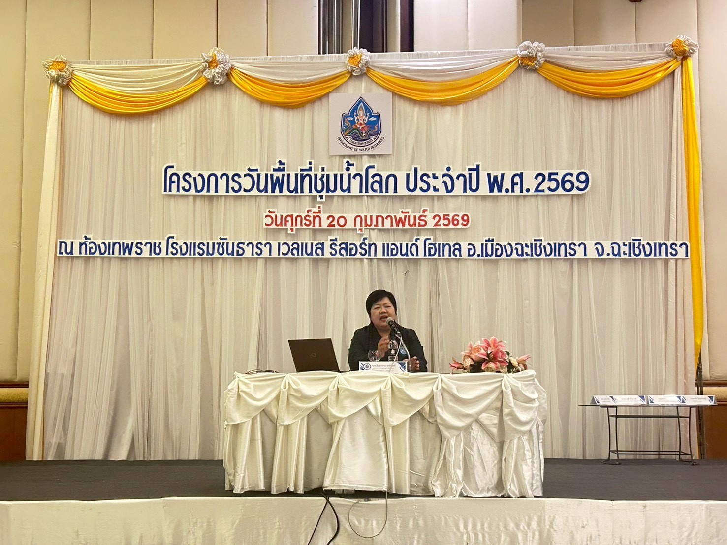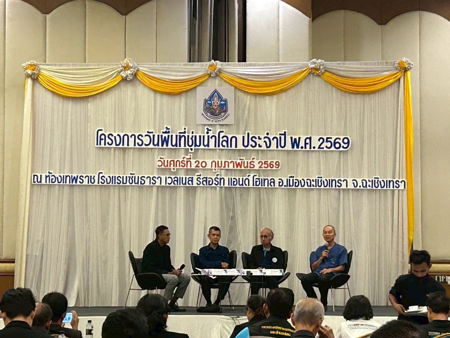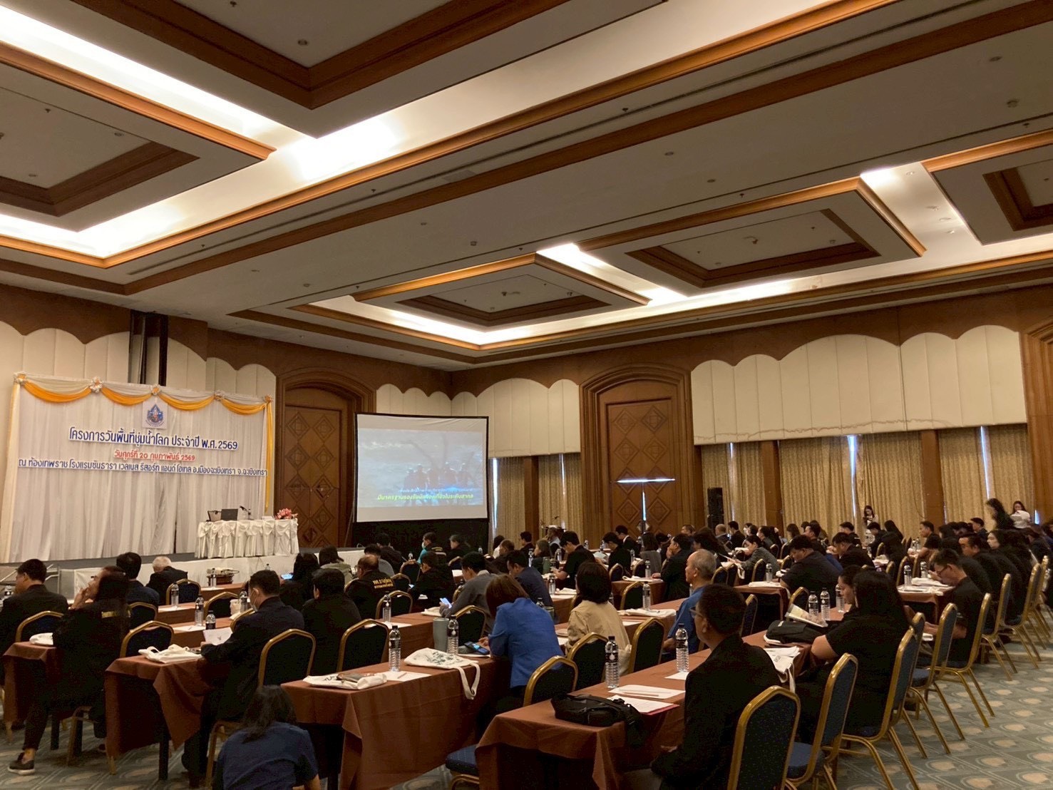 เมื่อวันที่ 20 กุมภาพันธ์ 2569 นางสาวบุญธิดา เปล่งแสง ผู้อำนวยการกองอนุรักษ์ทรัพยากรน้ำ มอบหมาย นางนันทวรรณ เหล่าฤทธิ์ ผู้อำนวยการส่วนบริหารจัดการพื้นที่ชุ่มน้ำ นายสนใจ หะวานนท์ ผู้เชี่ยวชาญด้านพื้นที่ชุ่มน้ำ และเจ้าหน้าที่กองอนุรักษ์ทรัพยากรน้ำ ร่วมโครงการวันพื้นที่ชุ่มน้ำโลก ภายใต้โครงการค่าใช้จ่ายในการดำเนินงานวันพื้นที่ชุ่มน้ำโลก ประจำปี พ.ศ. 2569 ณ โรงแรมซันธารา เวลเนส รีสอร์ท อำเภอเมืองฉะเชิงเทรา จังหวัดฉะเชิงเทรา โดยมี นายอร่าม ทัพหิรัญ ผู้อำนวยการสำนักงานทรัพยากรน้ำที่ 6 เป็นเป็นประธานกล่าวเปิดการประชุม