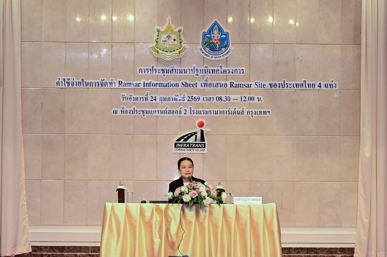 วันนี้ (24 กุมภาพันธ์ 2569) นางสาวบุญธิดา เปล่งแสง รองอธิบดีกรมทรัพยากรน้ำ เป็นประธานเปิดการประชุมสัมมนาปฐมนิเทศโครงการค่าใช้จ่ายในการจัดทำ Ramsar Information Sheet เพื่อเสนอ Ramsar Site ของประเทศไทย 4 แห่ง โดยมีผู้บริหารกรมฯ ผู้แทนจากภาครัฐ สถาบันการศึกษา องค์กรพัฒนาเอกชน และนักวิชาการอิสระ เข้าร่วมประชุม ณ ห้องประชุมแกรนด์ฮอลล์ 2 โรงแรมรามาการ์เด้นส์ กรุงเทพฯ