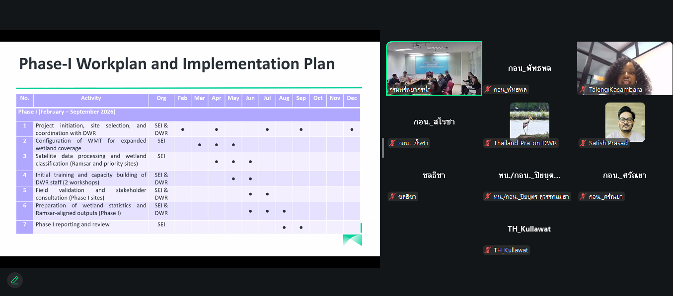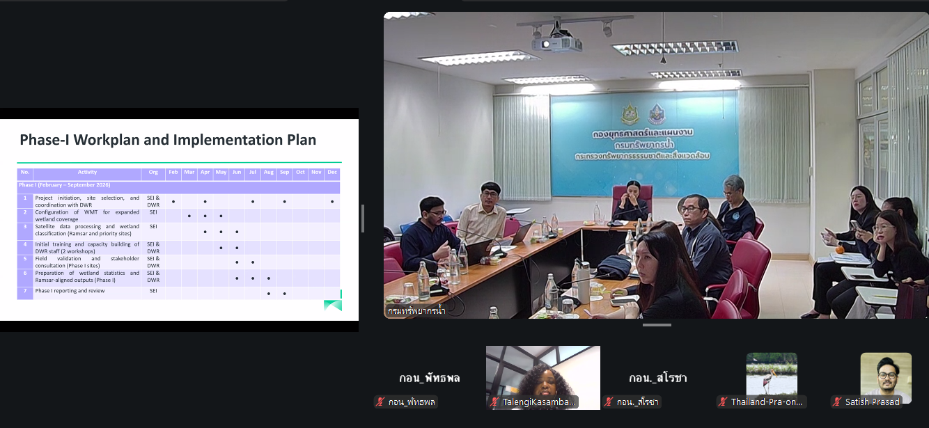 กรมทรัพยากรน้ำ ร่วมกับ สถาบันสิ่งแวดล้อมสตอกโฮล์ม (SEI) หารือแนวทางการประเมินพื้นที่ชุ่มน้ำด้วยเครื่องมือ Wetlands Monitoring Tools (WMT)