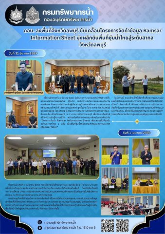 กอน. ลงพื้นที่จังหวัดลพบุรี ขับเคลื่อนโครงการจัดทำข้อมูล Ramsar Information Sheet มุ่งผลักดันพื้นที่ชุ่มน้ำไทยสู่ระดับสากล จังหวัดลพบุรี