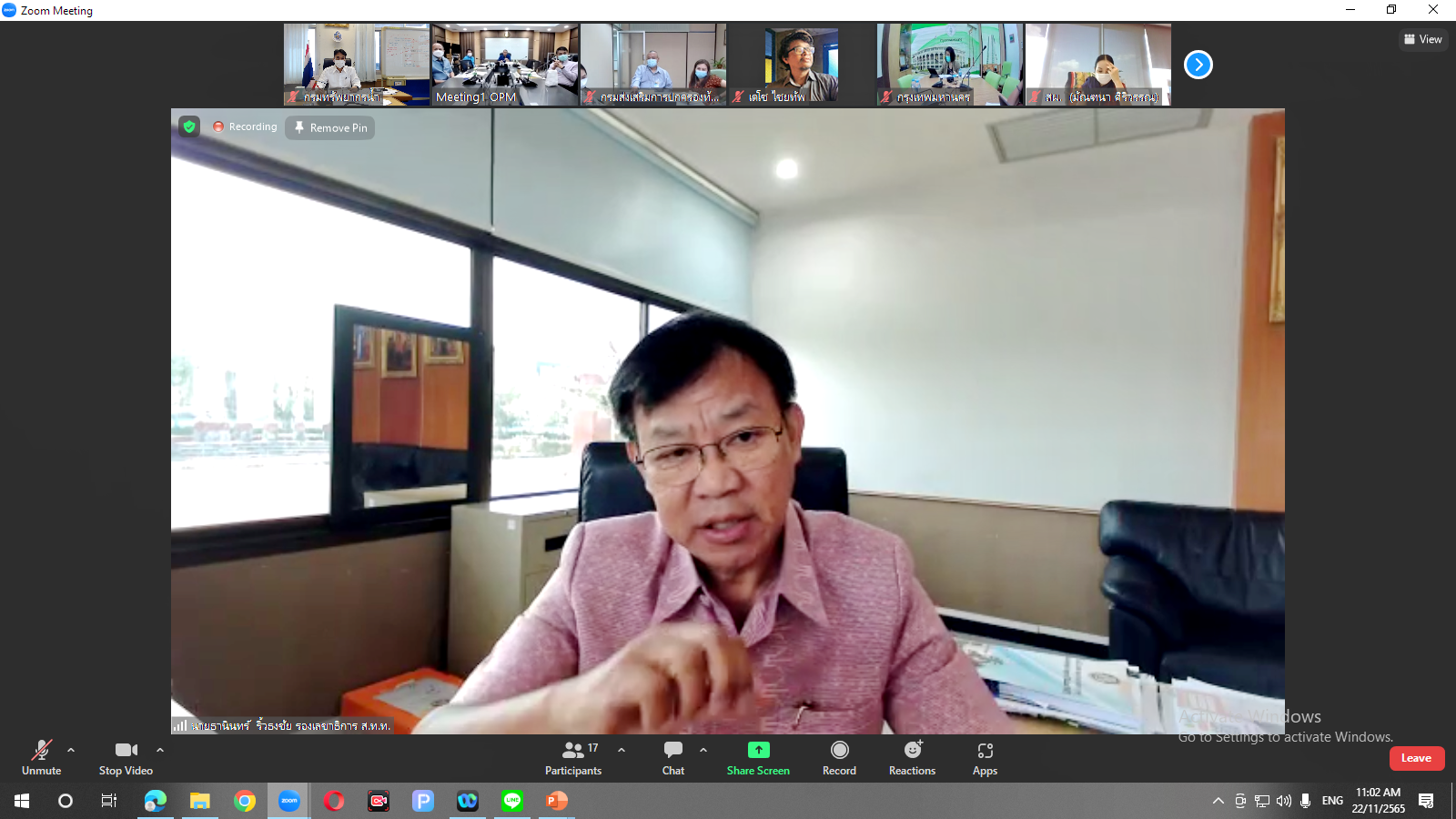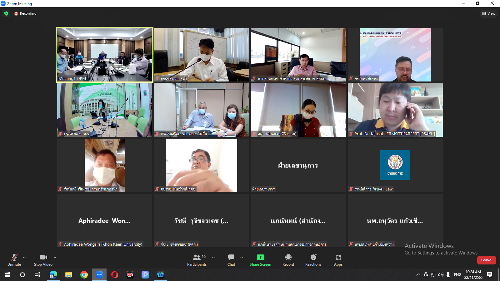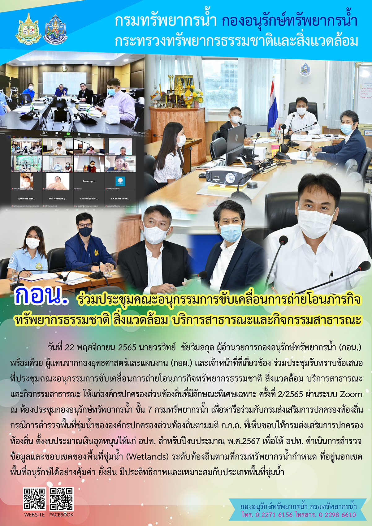 วันที่ 22 พฤศจิกายน 2565 นายวรวิทย์ ชัยวิมลกุล ผู้อำนวยการกองอนุรักษ์ทรัพยากรน้ำ (กอน.)พร้อมด้วย ผู้แทนจากกองยุทธศาสตร์และแผนงาน (กยผ.) และเจ้าหน้าที่ที่เกี่ยวข้อง ร่วมประชุมรับทราบข้อเสนอที่ประชุมคณะอนุกรรมการขับเคลื่อนการถ่ายโอนภารกิจทรัพยากรธรรมชาติ สิ่งแวดล้อม บริการสาธารณะและกิจกรรมสาธารณะ ให้แก่องค์กรปกครองส่วนท้องถิ่นที่มีลักษณะพิเศษเฉพาะ ครั้งที่ 2/2565 ผ่านระบบ Zoom ณ ห้องประชุมกองอนุรักษ์ทรัพยากรน้ำ ชั้น 7 กรมทรัพยากรน้ำ