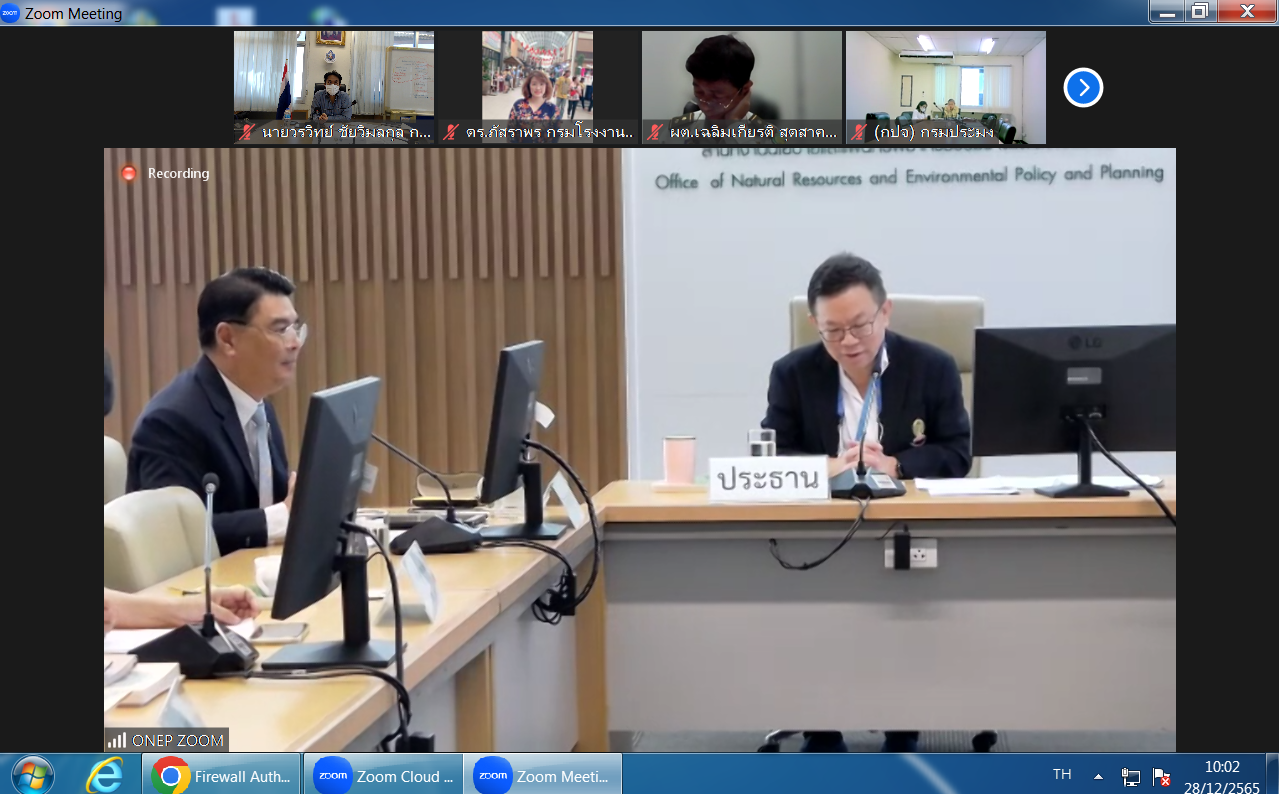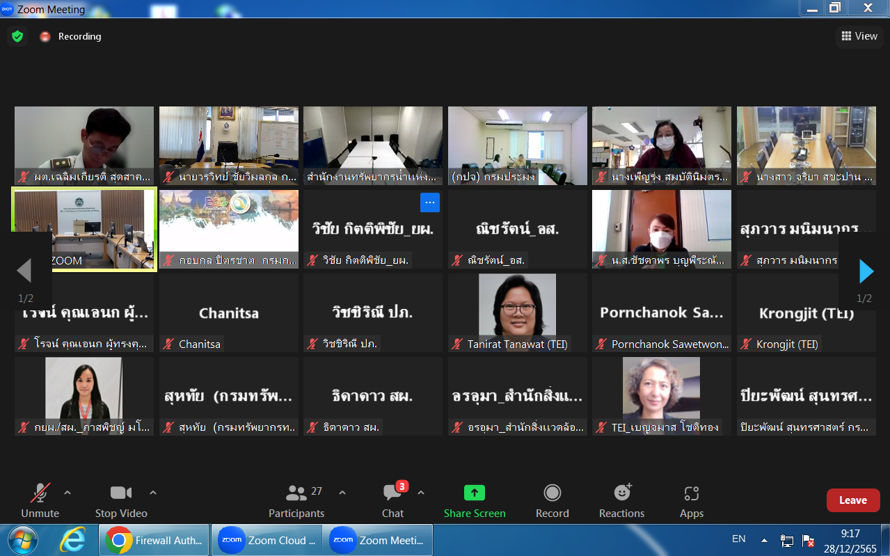 วันที่ 28 ธันวาคม 2565 เวลา 09.30 น. นายวรวิทย์ ชัยวิมลกุล ผู้อำนวยการกองอนุรักษ์ทรัพยากรน้ำ (กอน.) กรมทรัพยากรน้ำ และเจ้าหน้าที่ที่เกี่ยวข้อง เข้าร่วมการประชุมคณะอนุกรรมการจัดทำรายงานสถานการณ์คุณภาพสิ่งแวดล้อม ครั้งที่ 4/2565 ผ่านระบบ Zoom