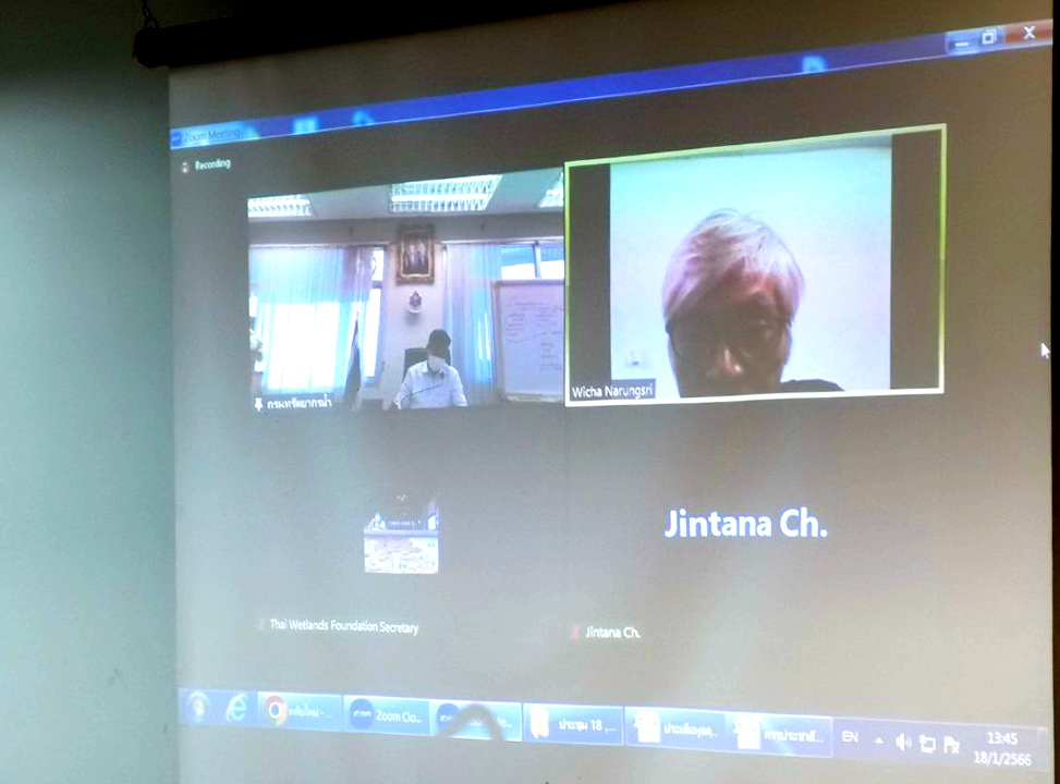 วันที่ 18 มกราคม 2566 เวลา 13.30 น. นายวรวิทย์ ชัยวิมลกุล ผู้อำนวยการกองอนุรักษ์ทรัพยากรน้ำ (กอน.) พร้อมด้วย นายเฉลิม กลิ่นนิ่มนวล ที่ปรึกษาด้านบริหารจัดการทรัพยากรน้ำสาธารณะ นายพงษ์พันธุ์ สุรินทร์ ผู้อำนวยการส่วนหลักเกณฑ์และมาตรการ (สหม.) นางสาวประอร อุดมประเสริฐ ผู้อำนวยการส่วนอนุสัญญาพื้นที่ชุ่มน้ำ (สอส.) และเจ้าหน้าที่ที่เกี่ยวข้อง ร่วมประชุมพูดคุยหารือรายละเอียดเพื่อเตรียมความพร้อมและซักซ้อมความเข้าใจร่วมกันในเรื่องการเตรียมการจัดงานวันพื้นที่ชุ่มน้ำโลก ประจำปี พ.ศ. 2566 ในการนี้ได้มีผู้แทนจากมูลนิธิพื้นที่ชุ่มน้ำไทย นำโดย นายวิชา นรังศรี ประธานมูลนิธิพื้นที่ชุ่มน้ำไทย ร่วมหารือผ่านทางระบบออนไลน์ โดยในปีนี้กำหนดจัดงานวันพื้นที่ชุ่มน้ำโลกขึ้น ณ วัดคงคาราม (วัดบน) จังหวัดฉะเชิงเทรา