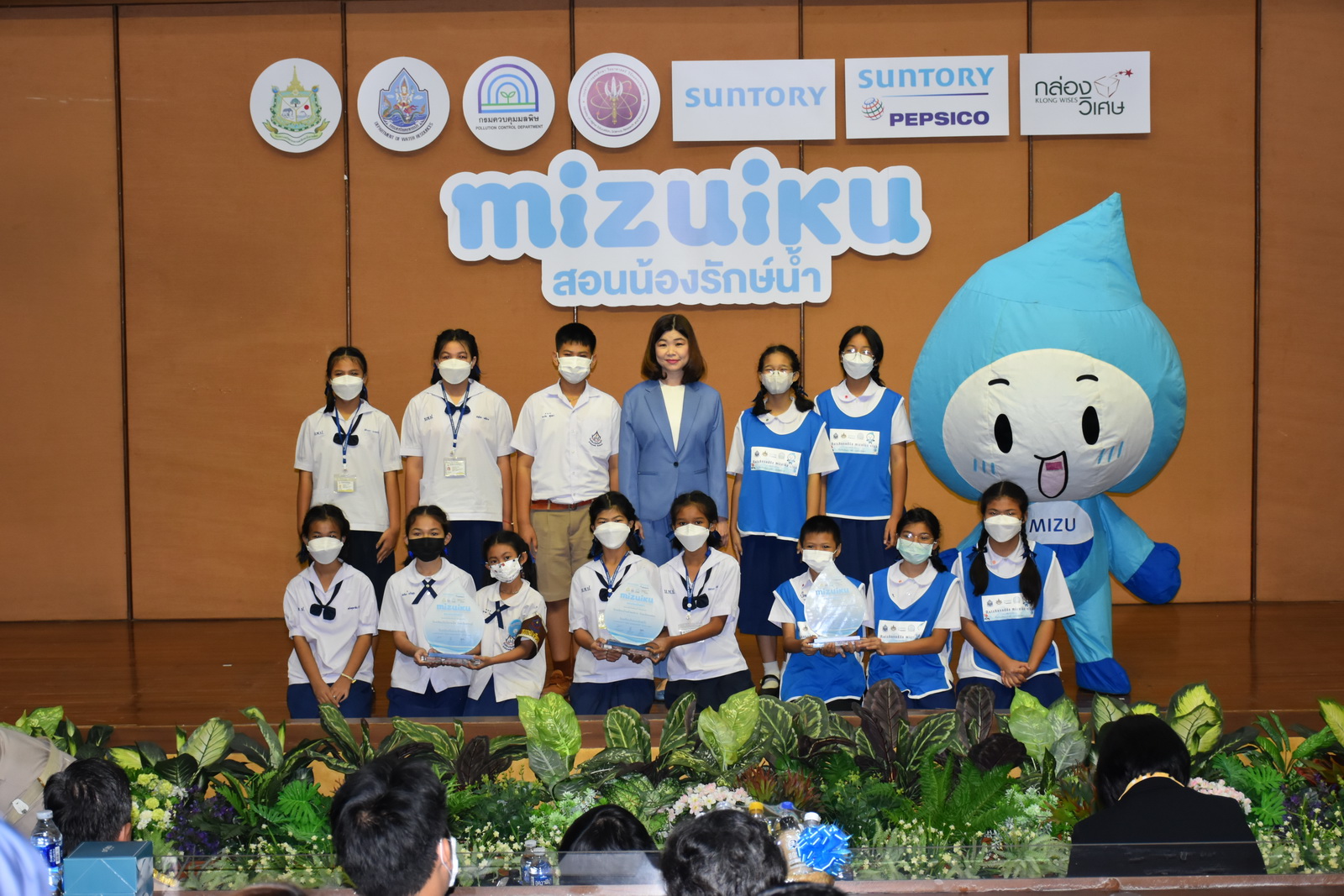 วันที่ 23 มกราคม 2566 นายภาดล ถาวรกฤชรัตน์ อธิบดีกรมทรัพยากรน้ำ พร้อมด้วย นายวรวิทย์ ชัยวิมลกุล ผู้อำนวยการกองอนุรักษ์ทรัพยากรน้ำ (กอน.) นางสาวสุจิตรา รัตนวงศ์ ผู้อำนวยการส่วนส่งเสริมและประสานมวลชน กอน. คณะเจ้าหน้าที่ที่เกี่ยวข้องจากกรมทรัพยากรน้ำ กรมควบคุมมลพิษ และกระทรวงการอุดมศึกษา วิทยาศาสตร์ วิจัยและนวัตกรรม ร่วมกับ บริษัท ซันโทรี่ เป๊บซี่โค เบเวอเรจ (ประเทศไทย) จำกัด จัดพิธีมอบรางวัลโครงการ “มิซุอิกุ : สอนน้องรักษ์น้ำ” ประจำปี 2565 ณ ห้องประชุมศักดิ์สิทธิ์ ตรีเดช อาคารกรมควบคุมมลพิษ