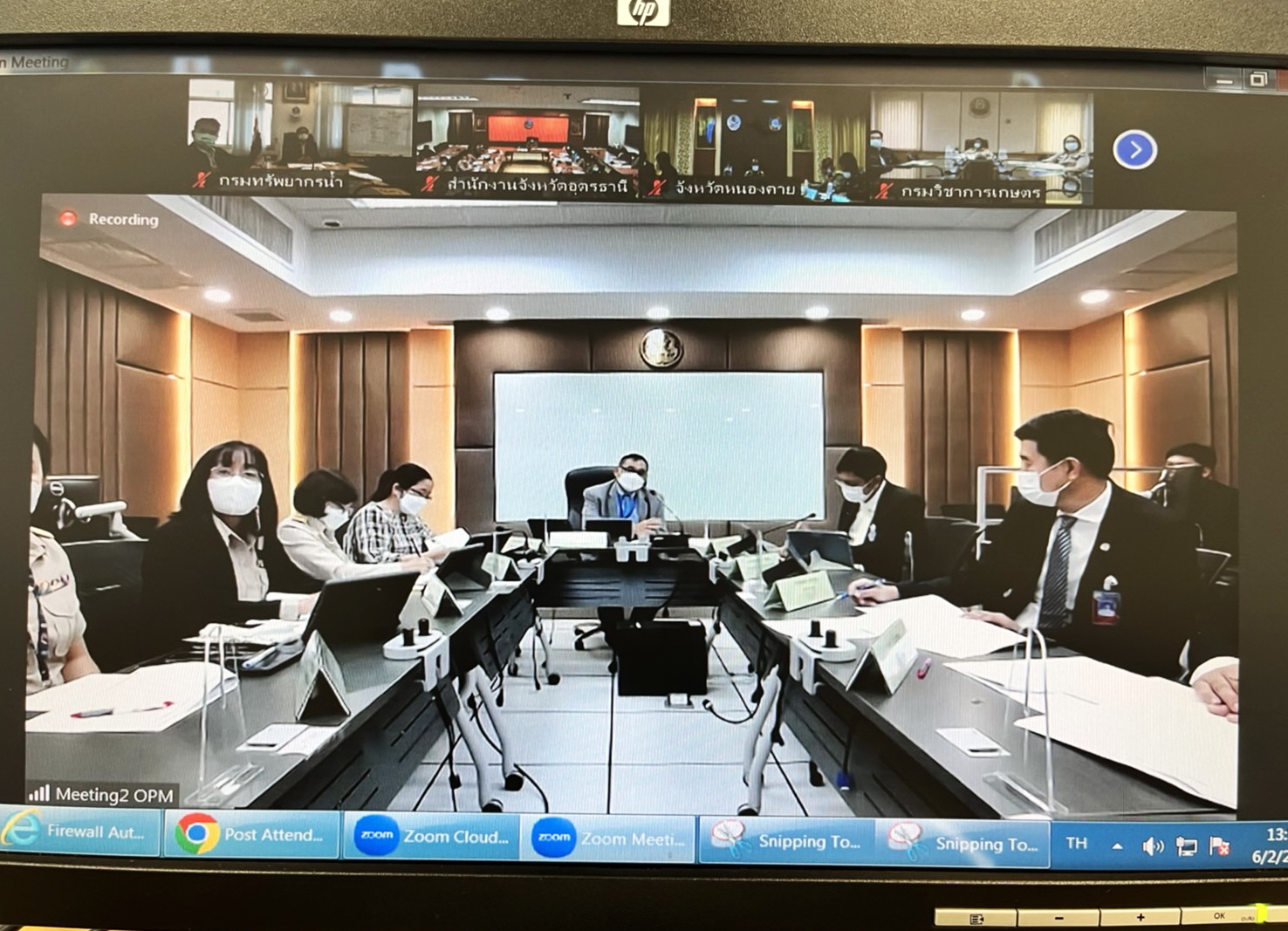 วันที่ 6 กุมภาพันธ์ 2566 อธิบดีกรมทรัพยากรน้ำ มอบหมายให้นายนิรุติ คูณผล ผู้อำนวยการกองการจัดสรรน้ำ รักษาราชการแทนรองอธิบดีกรมทรัพยากรน้ำ นายวรวิทย์ ชัยวิมลกุล ผู้อำนวยการกองอนุรักษ์ทรัพยากรน้ำ (กอน.) พร้อมด้วย นายพิพัฒน์ เรืองงาม ผู้เชี่ยวชาญด้านส่งเสริมและประสานมวลชน และเจ้าหน้าที่ที่เกี่ยวข้อง ร่วมประชุมติดตามความก้าวหน้าผลการดำเนินงานในพื้นที่การกำกับและติดตามการปฏิบัติราชการในภูมิภาคของรองนายกรัฐมนตรี เขตตรวจราชการที่ 10 (จังหวัดอุดรธานี และจังหวัดหนองคาย) ผ่านสื่ออิเล็กทรอนิกส์ โดยมีนายสุพัฒนพงษ์ พันธ์มีเชาว์ รองนายกรัฐมนตรี เป็นประธานการประชุม