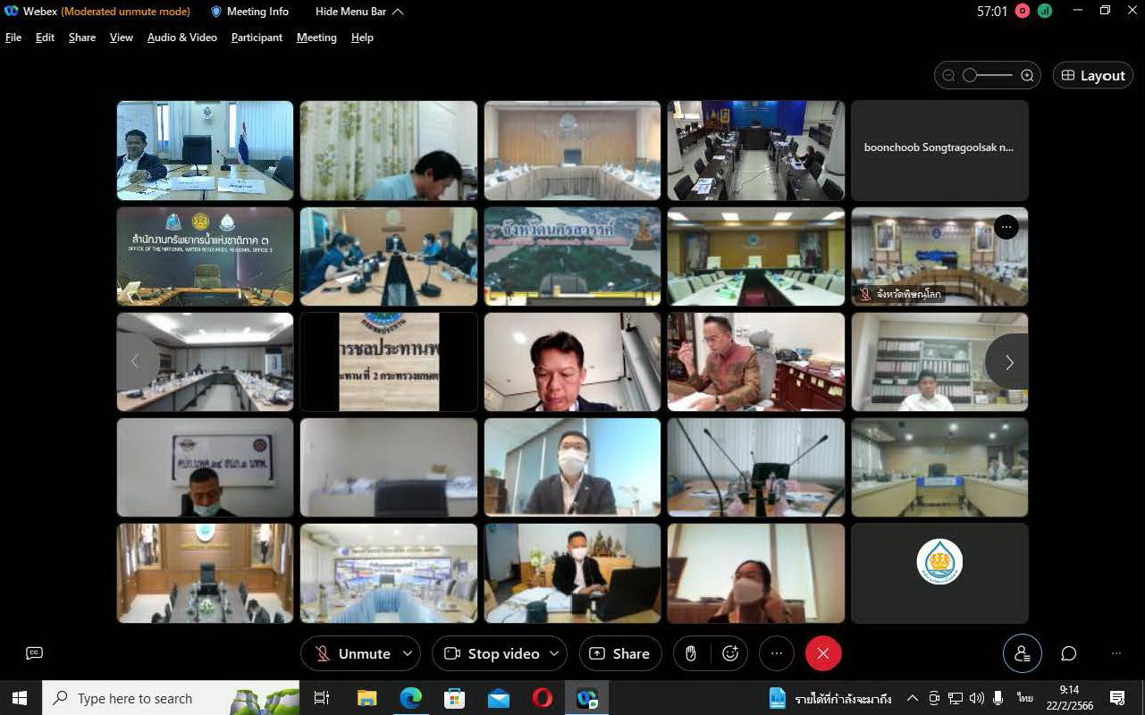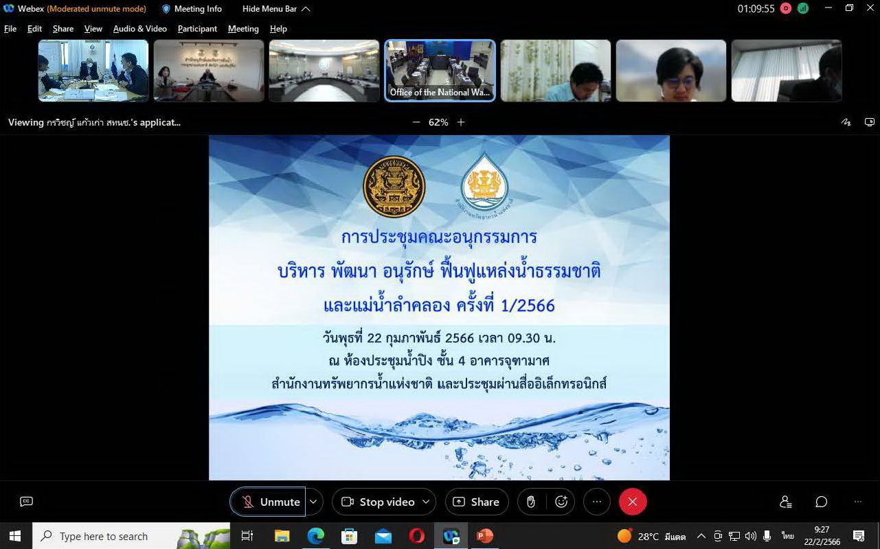 วันที่ 22 กุมภาพันธ์ 2566 ผู้แทนกระทรวงทรัพยากรธรรมชาติและสิ่งแวดล้อม นายนิทัศน์ พรมพันธุ์ ผู้อำนวยการกองพัฒนาแหล่งน้ำ 2 พร้อมด้วย ผู้แทนจากกรมทรัพยากรน้ำ นายวรวิทย์ ชัยวิมลกุล ผู้อำนวยการกองอนุรักษ์ทรัพยากรน้ำ (กอน.) นายพิพัฒน์ เรืองงาม ผู้เชี่ยวชาญด้านส่งเสริมและประสานมวลชน และเจ้าหน้าที่ที่เกี่ยวข้อง ร่วมประชุมคณะอนุกรรมการบริหาร พัฒนา อนุรักษ์ ฟื้นฟูแหล่งน้ำธรรมชาติ และแม่น้ำลำคลอง ครั้งที่ 1/2566 ผ่านสื่ออิเล็กทรอนิกส์